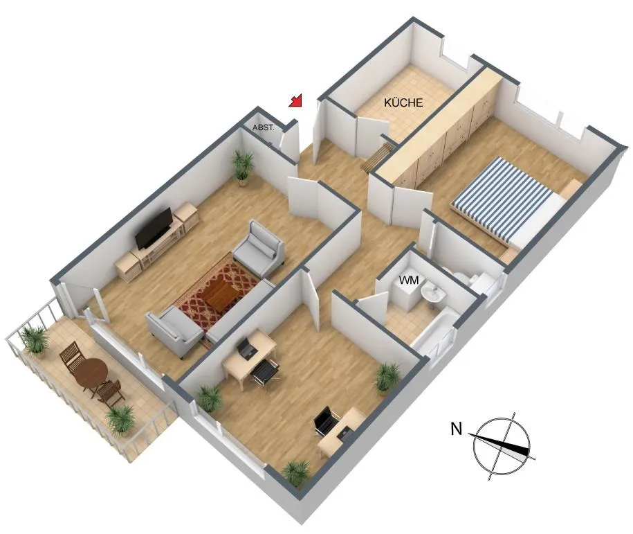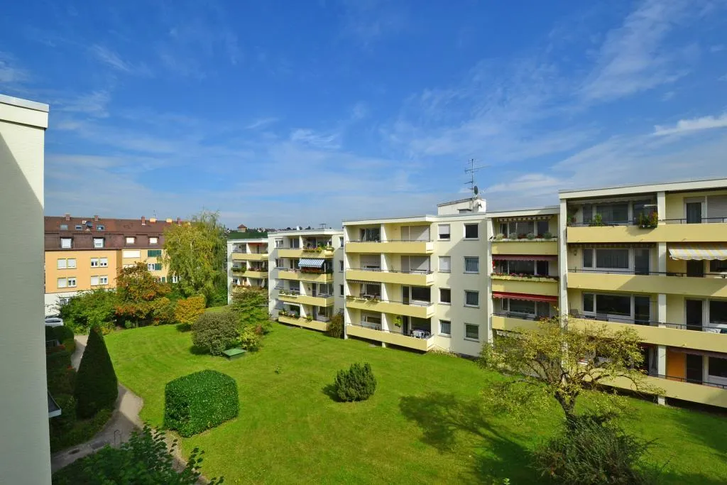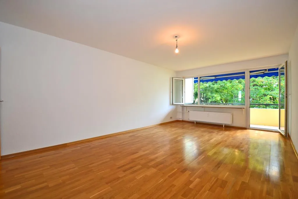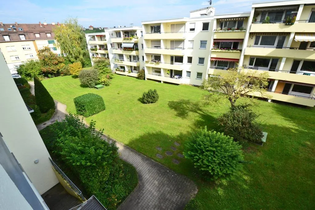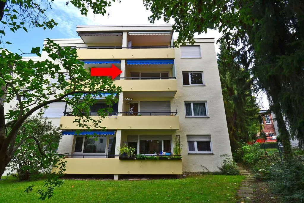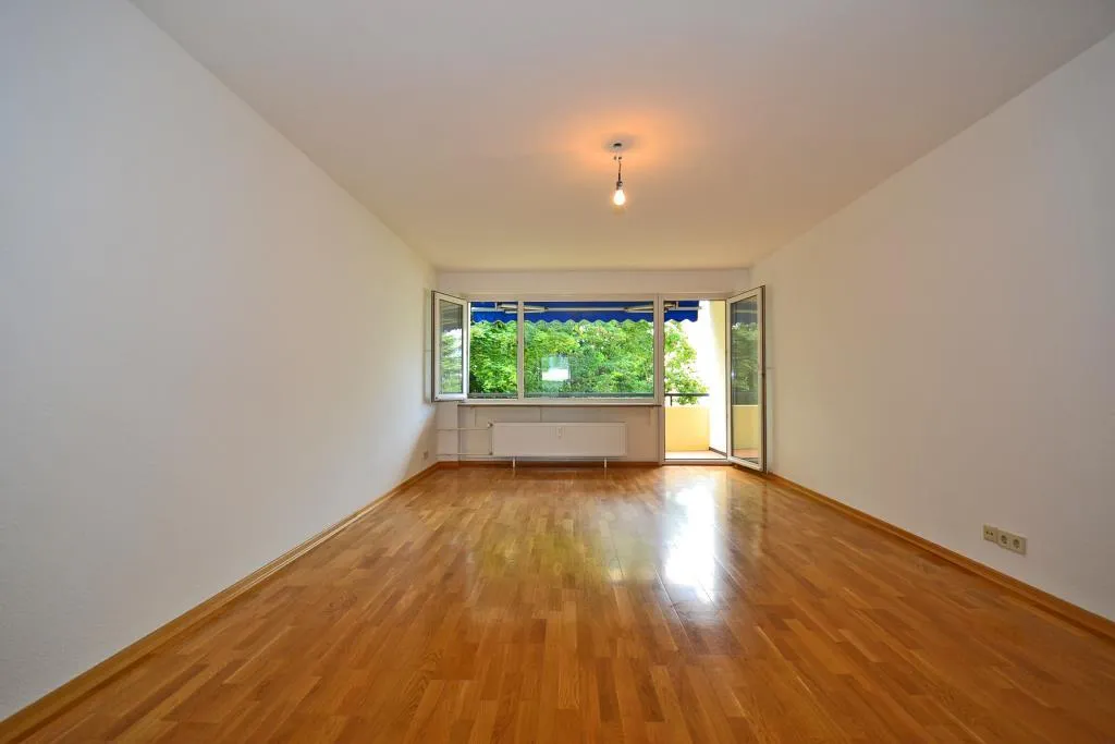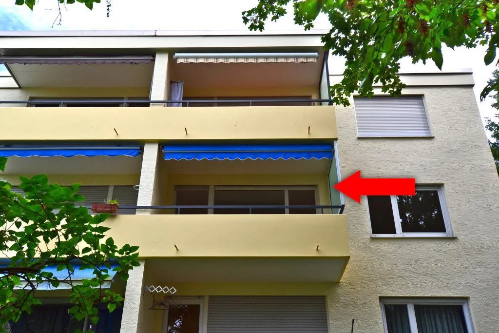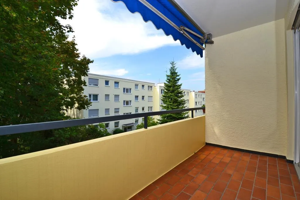 Der ca. 7 m² große West-Balkon ist überdacht, vom Wohnzimmer begehbar und mit einer Markise ausgestattet.
