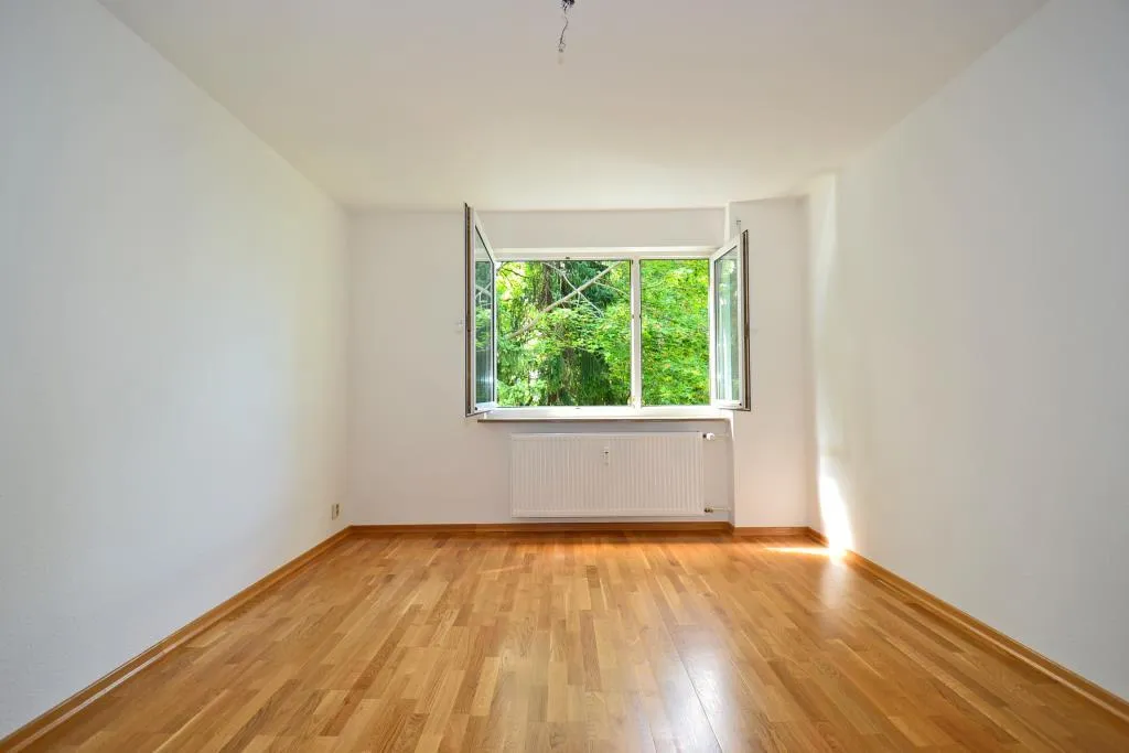 Die Böden in der Küche, im Badezimmer und im separaten WC sind gefliest. Das Wohnzimmer, das Schlafzimmer, das Kinderzimmer sowie der Flur sind mit Parkettböden ausgestattet.