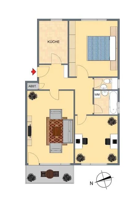 Die Aufteilung der Wohnung ist sehr gut: Alle Räume sind vom Flur aus begehbar. Das Badezimmer ist mit einem Fenster ausgestattet. Das WC ist separat. In der Wohnung befindet sich ein Abstellraum.
