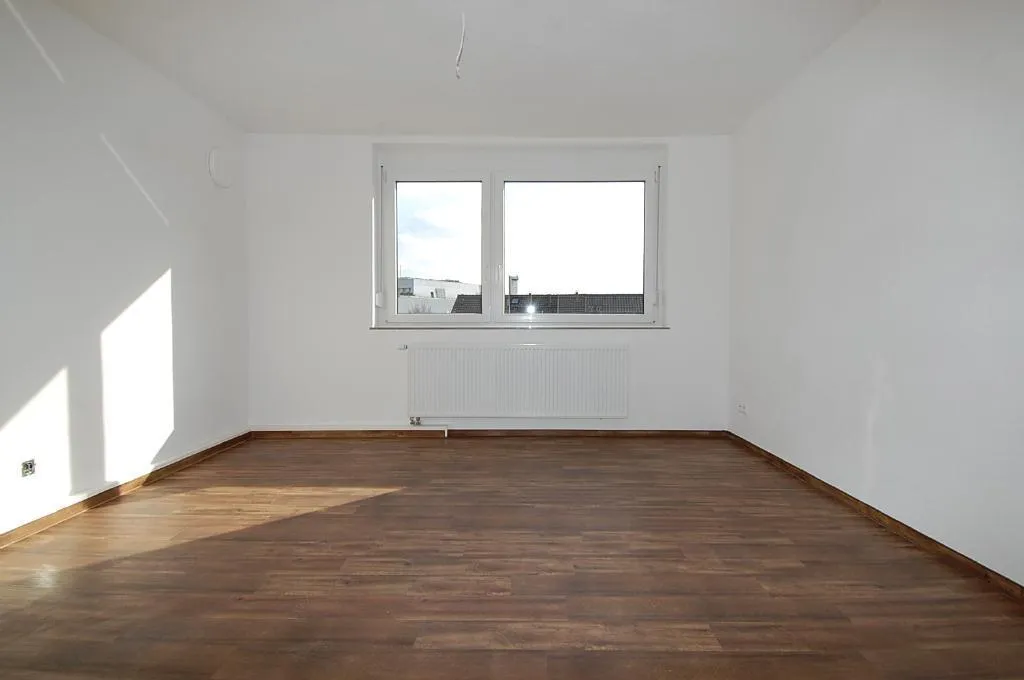 Das sonnige Wohnzimmer ist nach Süd-Osten ausgerichtet und mit hochwertigem Laminatboden ausgestattet.