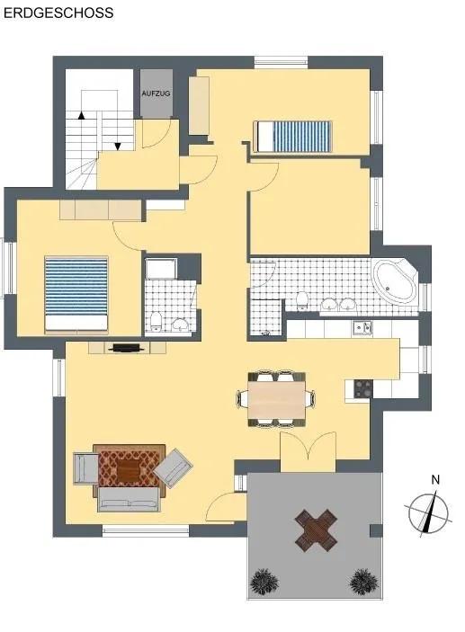 Diese hochwertige 4-Zimmer-Etagen-Wohnung mit Süd-Balkon (Hanglage) befindet sich im Erdgeschoss.