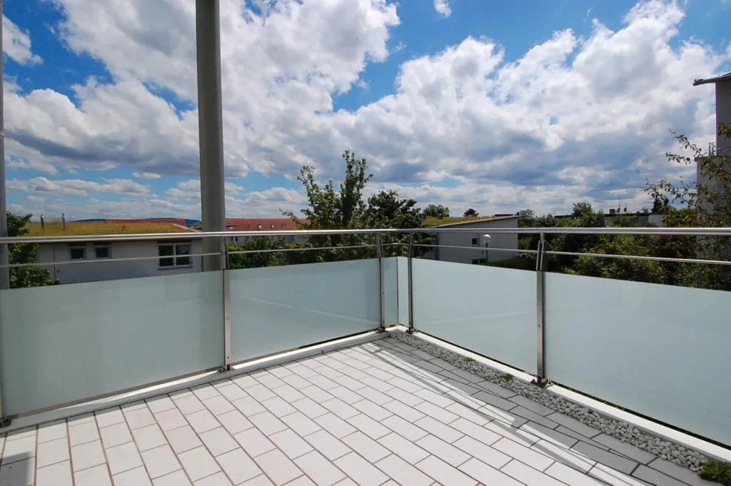 Der ca. 8 m² große Süd-West Balkon ist teilüberdacht. Er ist vom Wohn- und Arbeitszimmer begehbar.