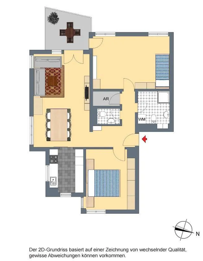 Der Grundriss der Wohnung ist günstig und zweckmäßig. Alle Räume sind vom Flur/Diele aus begehbar. Die Wohnung verfügt über einen Balkon und einen zusätzlichen Abstellraum in der Wohnung sowie ein zweites WC separat.