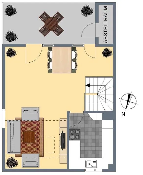 Zur Wohnung gehören ein ca. 7 m² großer Abstellraum im Untergeschoss sowie ein Kfz-Abstellplatz direkt vor dem Haus.