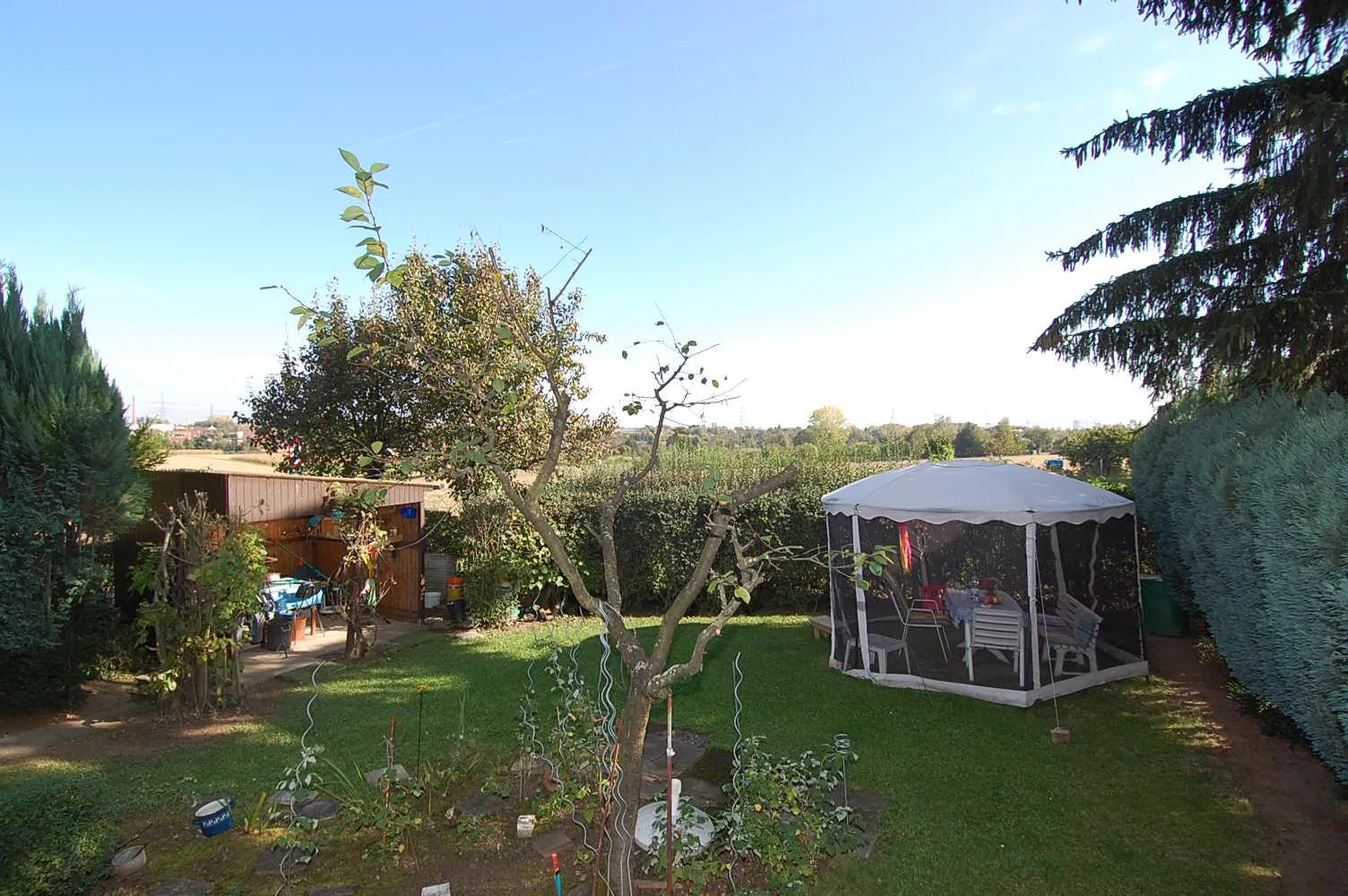 Die grüne Umgebung zum Spazierengehen befindet sich direkt hinter dem Haus.