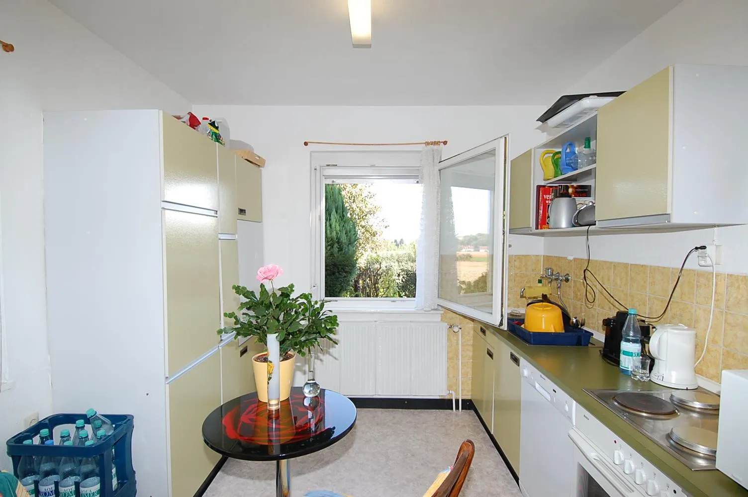 Die Einbauküche gehört zur Wohnung dazu und verfügt über alle notwendingen Elektrogeräte, außer einer Spülmaschine.