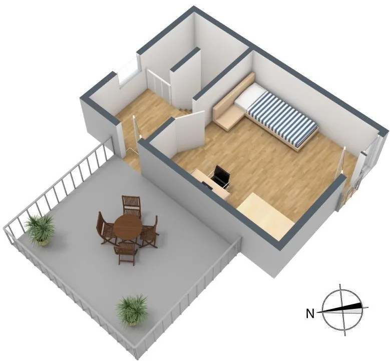 Dachgeschoss: Kinderzimmer mit französischem Balkon und eine nach Westen ausgerichtete Dachterrasse.