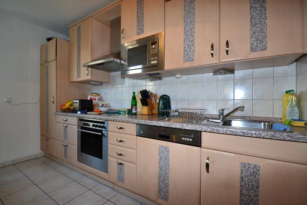 Die Küche ist mit einem Außenabzug sowie einer älteren, aber funktionsfähigen Einbauküche ausgestattet. Die Einbauküche kann von den aktuellen Mietern übernommen werden.