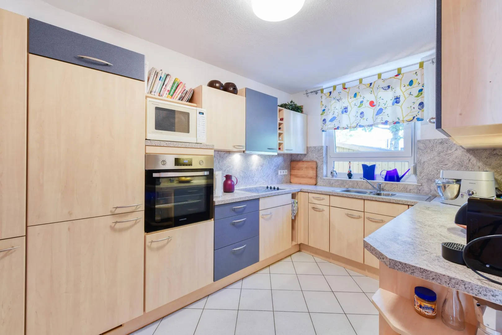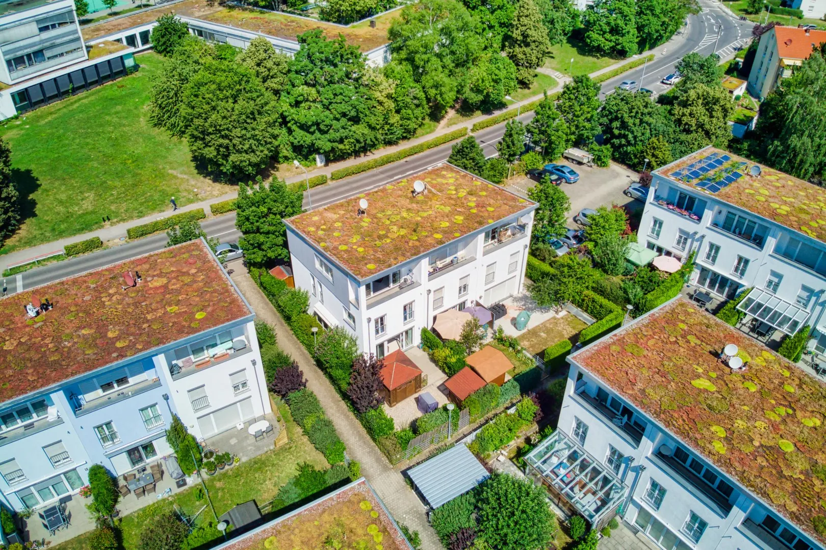 Es ist ausgestattet mit Vollwärmeschutz (14 cm Dämmung), Gas-Zentral-Fußbodenheizung mit Brennwerttherme, Kunststofffenstern mit Rollläden (teilweise elektrisch), SAT-Anlage und Dach mit extensiver Dachbegrünung.