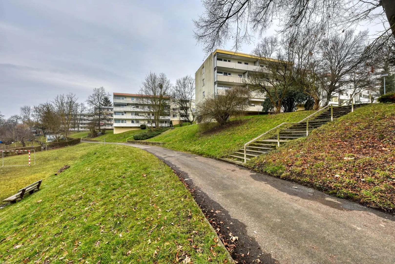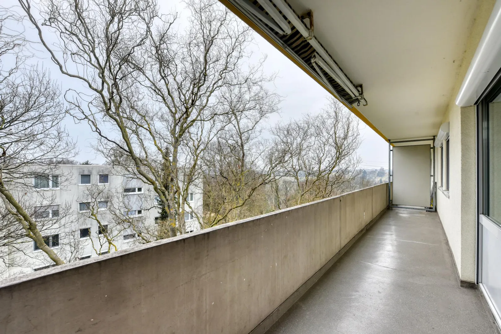 Diese familienfreundliche 4-Zimmer-Wohnung mit großem Süd/West-Balkon befindet sich im 3. Obergeschoss / Dachgeschoss mit Flachdach.