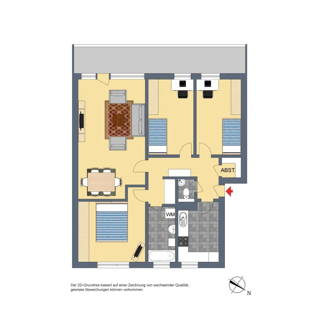 Das Wohnzimmer, die beiden Kinderzimmer sowie der Balkon sind nach Süd-Westen ausgerichtet. Die Küche, das Badezimmer sowie das Schlafzimmer sind nach Nord-Osten ausgerichtet.