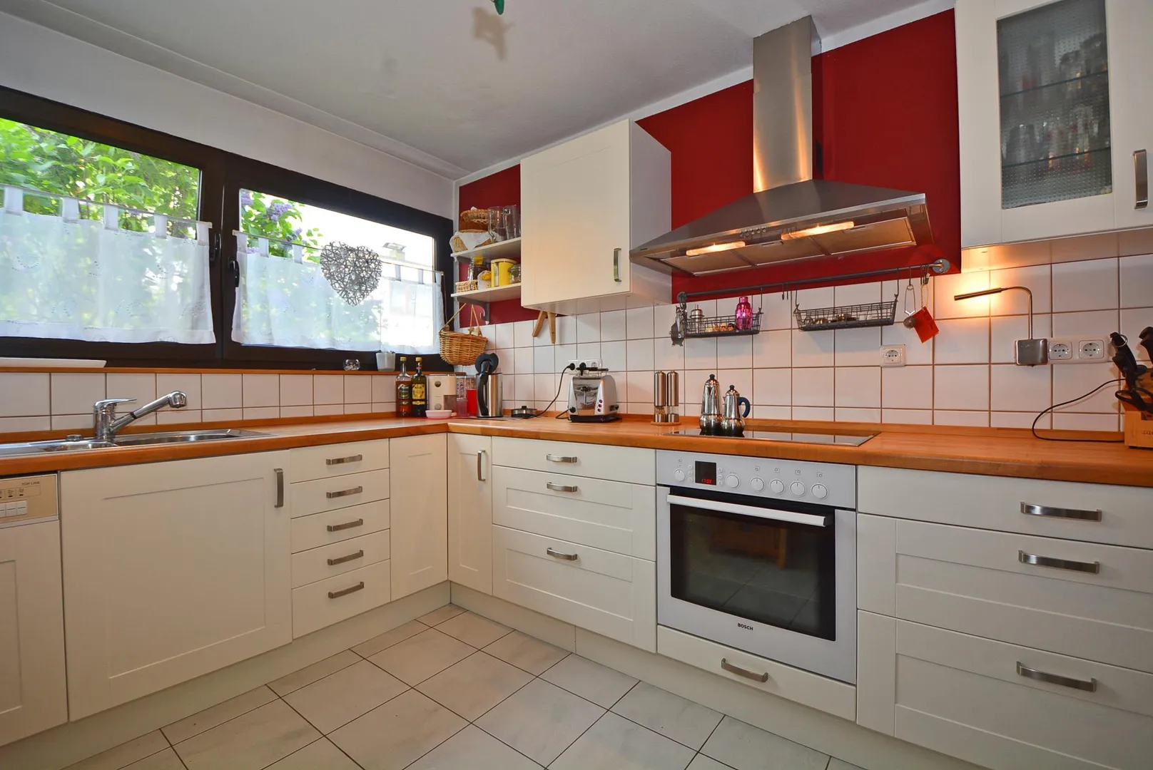 Diese hochwertig ausgestattete 4-Zimmer-Etagen-Wohnung mit großer Terrasse und Garten befindet sich im Erdgeschoss eines 4-Familien-Reihenmittelhauses.