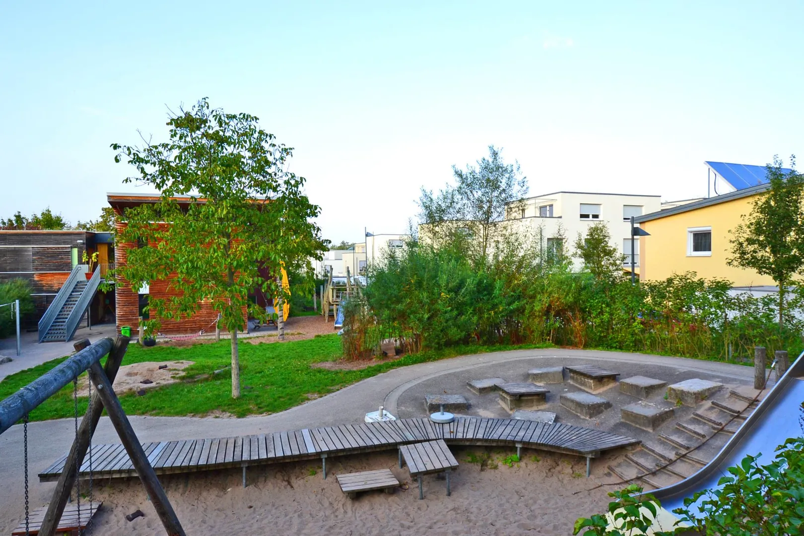 Kindergärten, Kindertagesstätten, Hort, diverse Schulen, verschiedene Einkaufsmöglichkeiten, öffentliche Verkehrsmittel und Sportvereine sind bequem zu Fuß erreichbar.