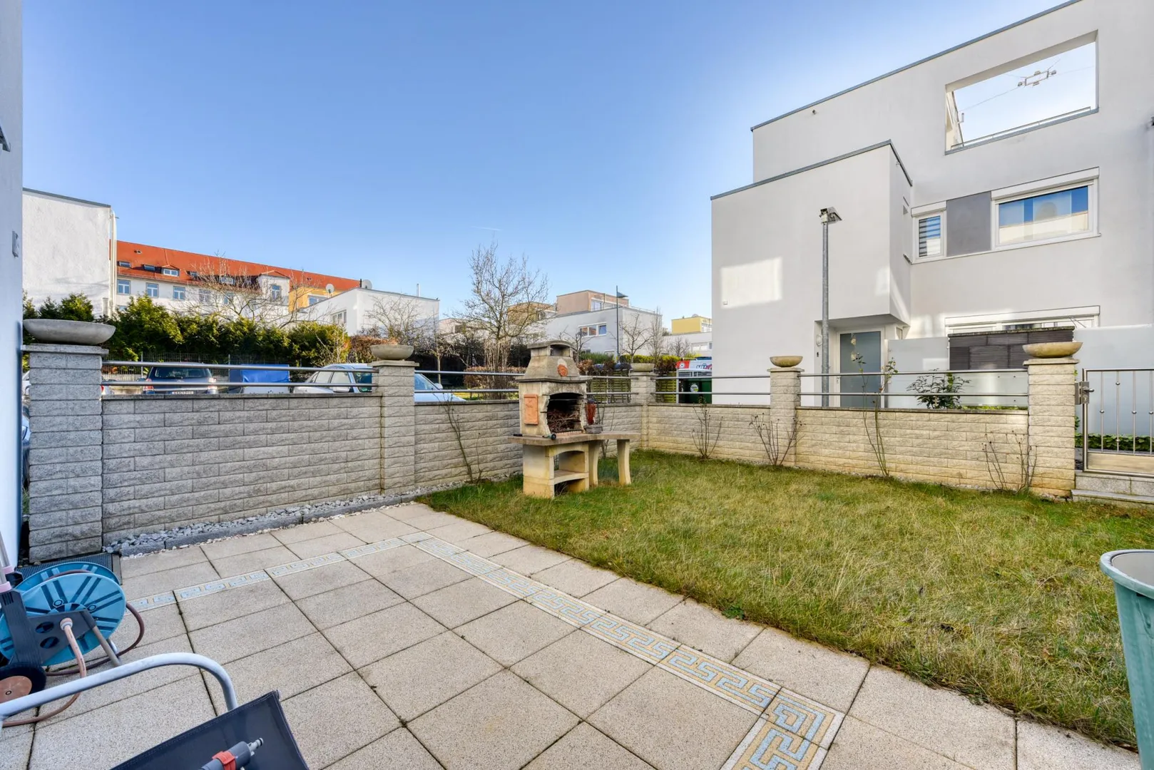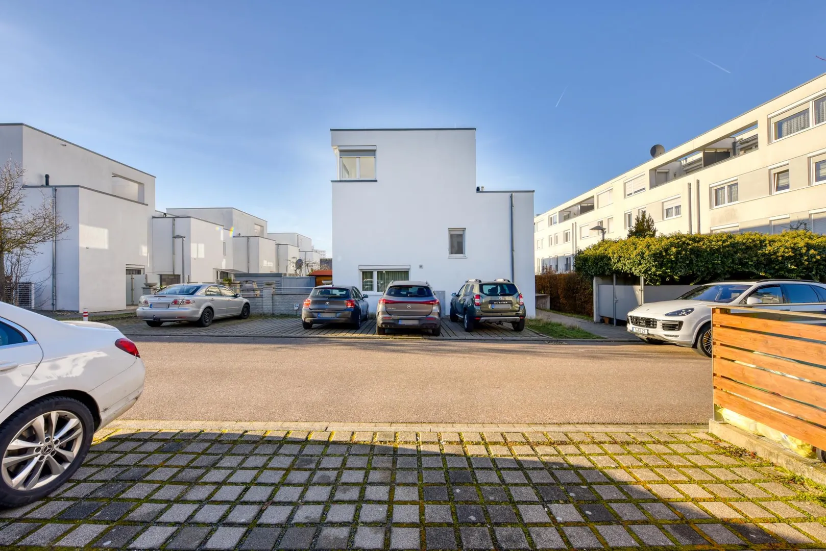 Auf dem Grundstück befindet sich noch ein Kfz-Außenstellplatz an der Süd/Ost-Hausseite. Dort befinden sich auch noch 5 weitere Kfz-Stellplätze.