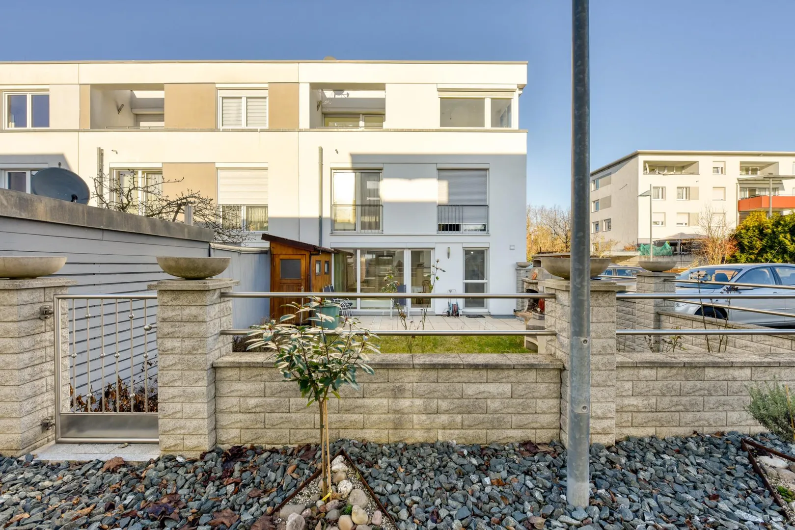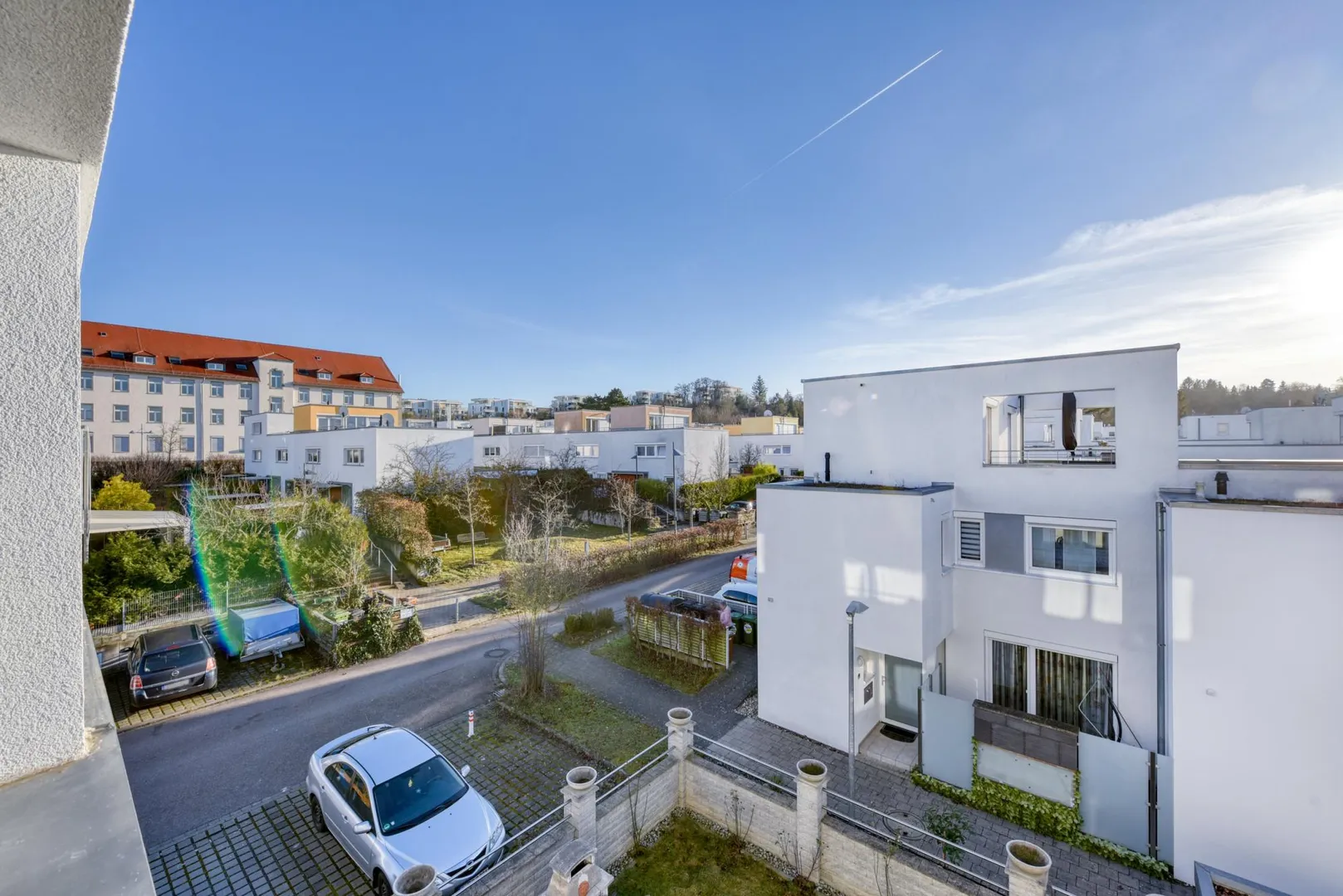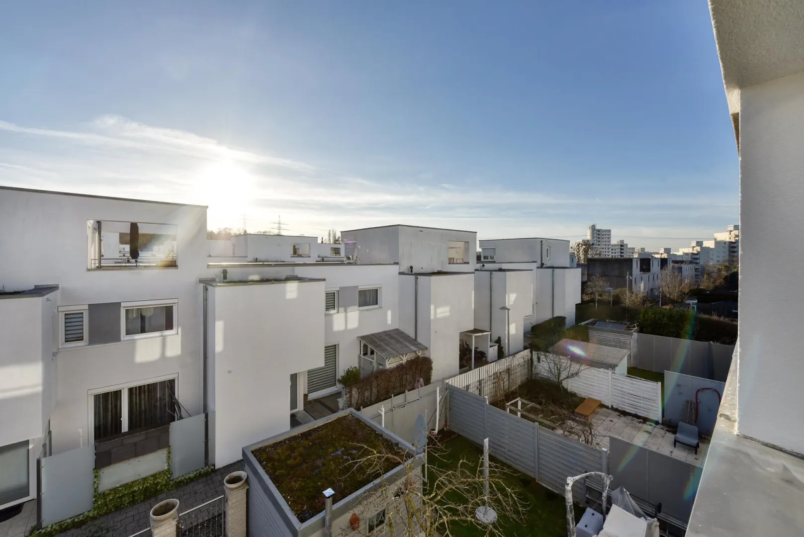 Das Wohngebiet ist vor ca. 20 Jahren neu entstanden und besteht aus einer zwei- bis dreigeschossigen Reihenhausbebauung, welche durch viergeschossige Mehrfamilienhäuser entlang der Hauptstraße stehend, geschützt ist.