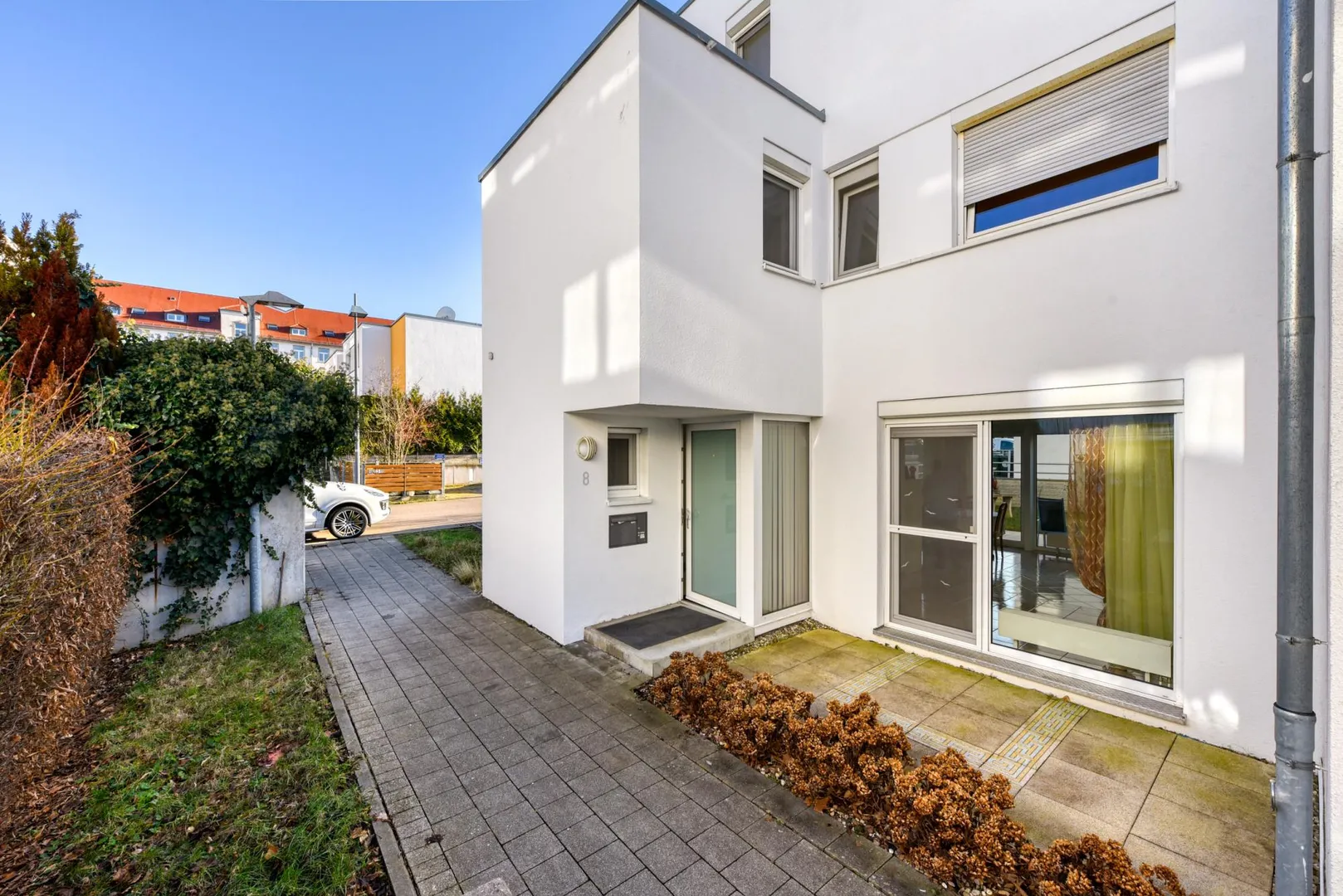 Zum Haus gehört ein Kfz-Stellplatz in der Tiefgarage. Vom TG-Stellplatz gibt es einen direkten Zugang ins Haus. Der Anteil an der Tiefgarage beträgt 20/10.000.