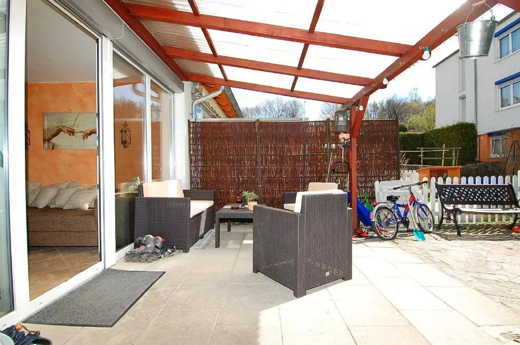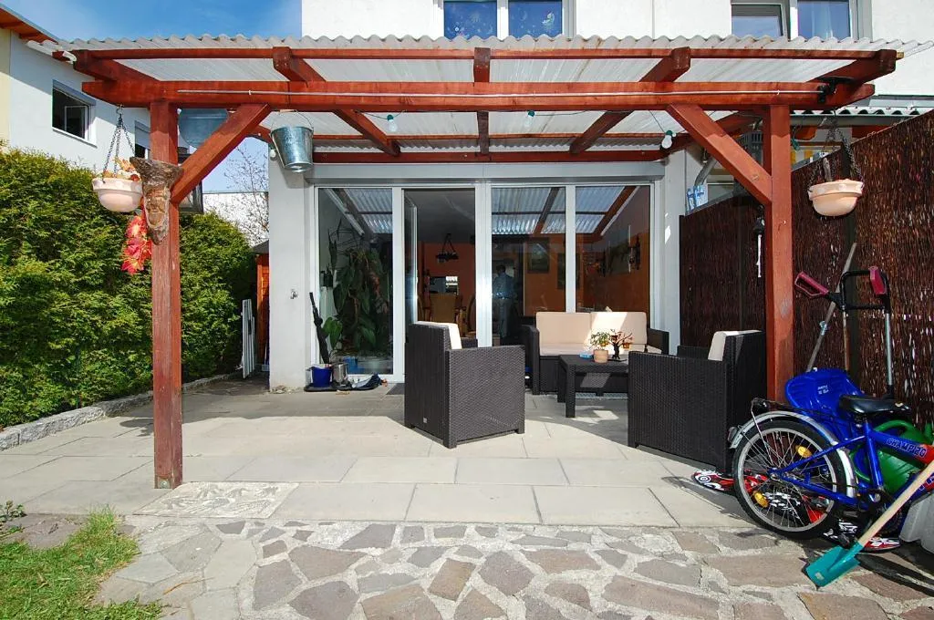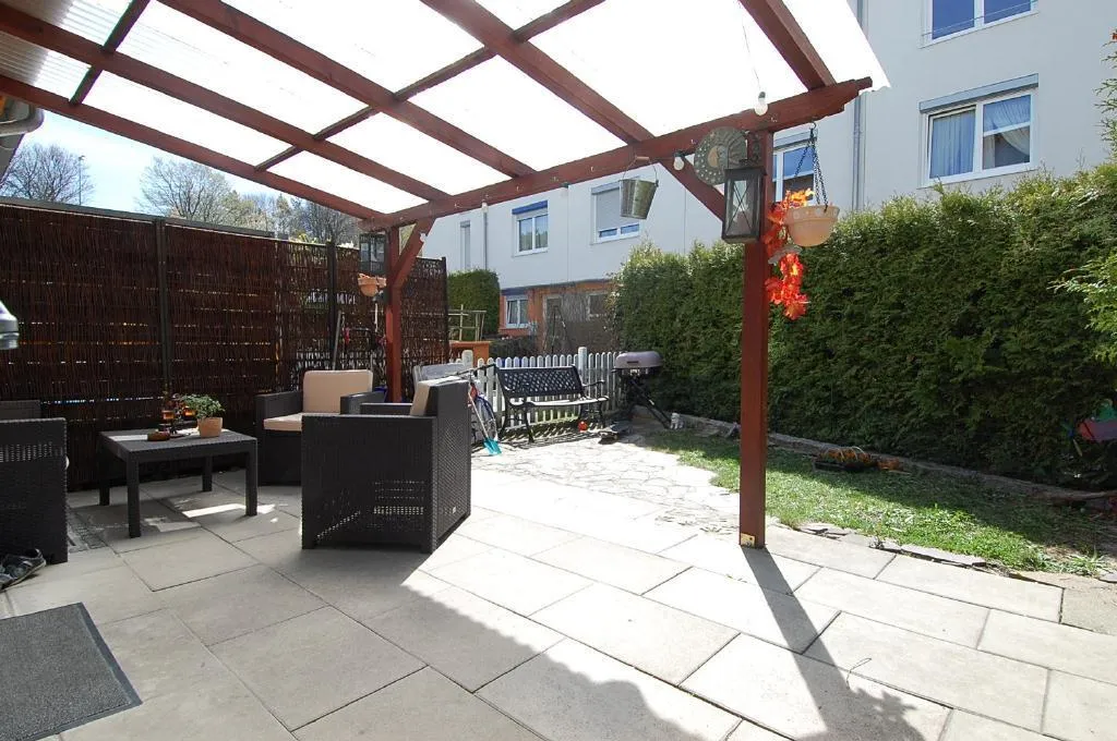 Kleiner Garten, ca. 20 m² überdachte TERRASSE.