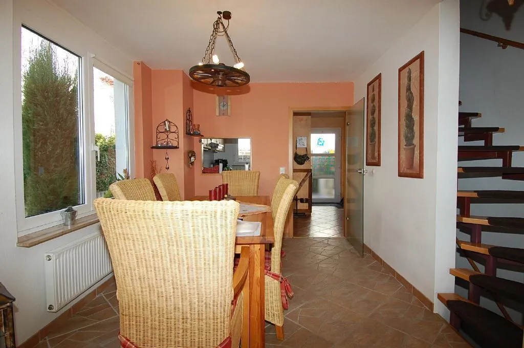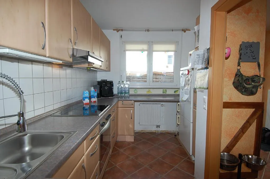 Das Erdgeschoss ist gefliest. Die Küche verfügt über eine Durchreiche und einen Außenabzug.