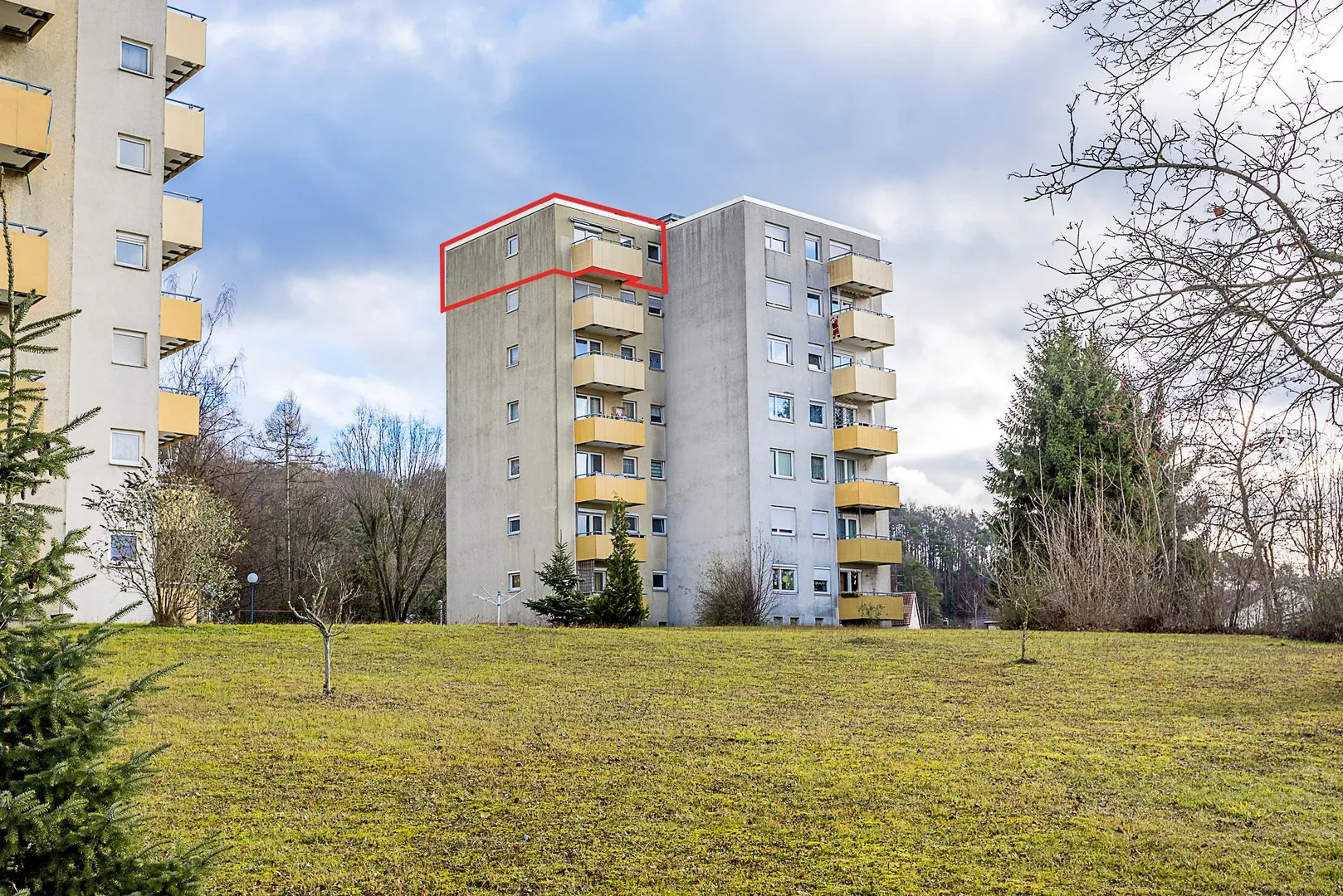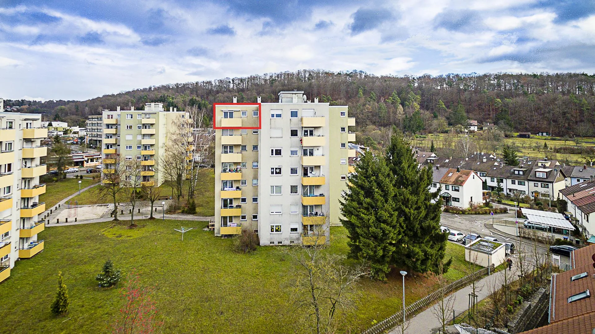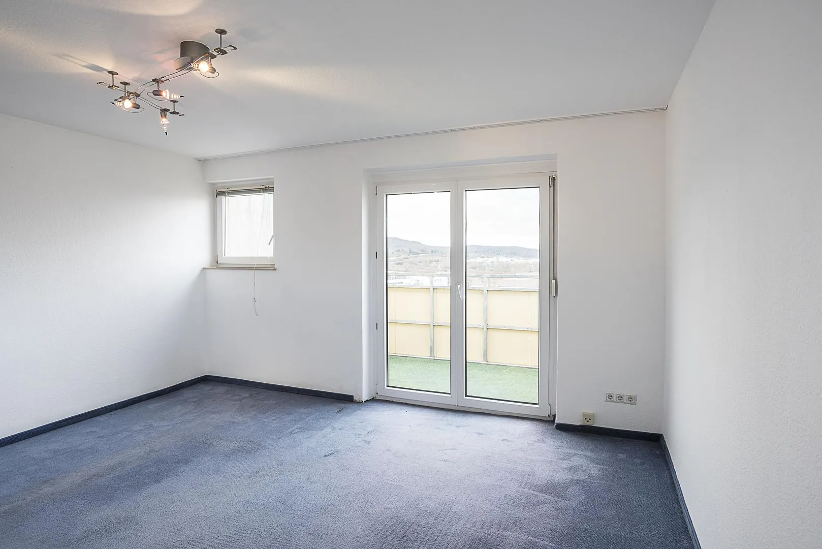 Der Grundriss der Wohnung ist gut. Alle Räume sind direkt vom Flur begehbar. Der West-Balkon mit Fernblick ist über das Wohnzimmer begehbar und ist ausgestattet mit einer Markise. Im Flur befindet sich ein Einbauschrank.