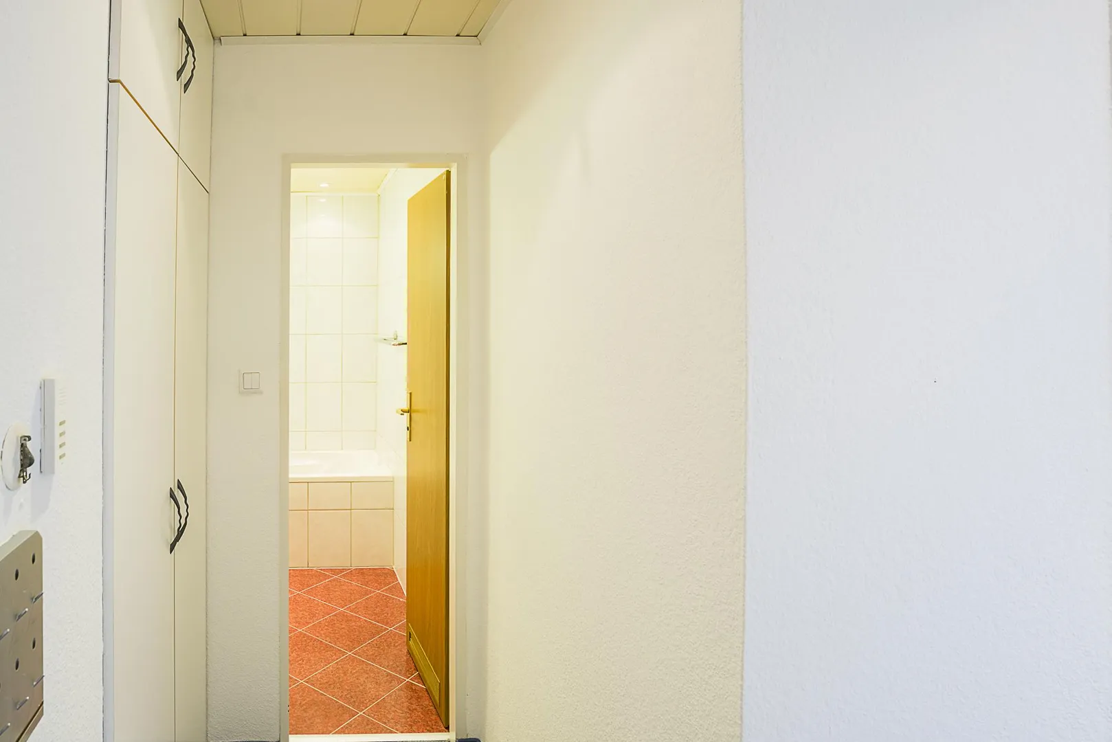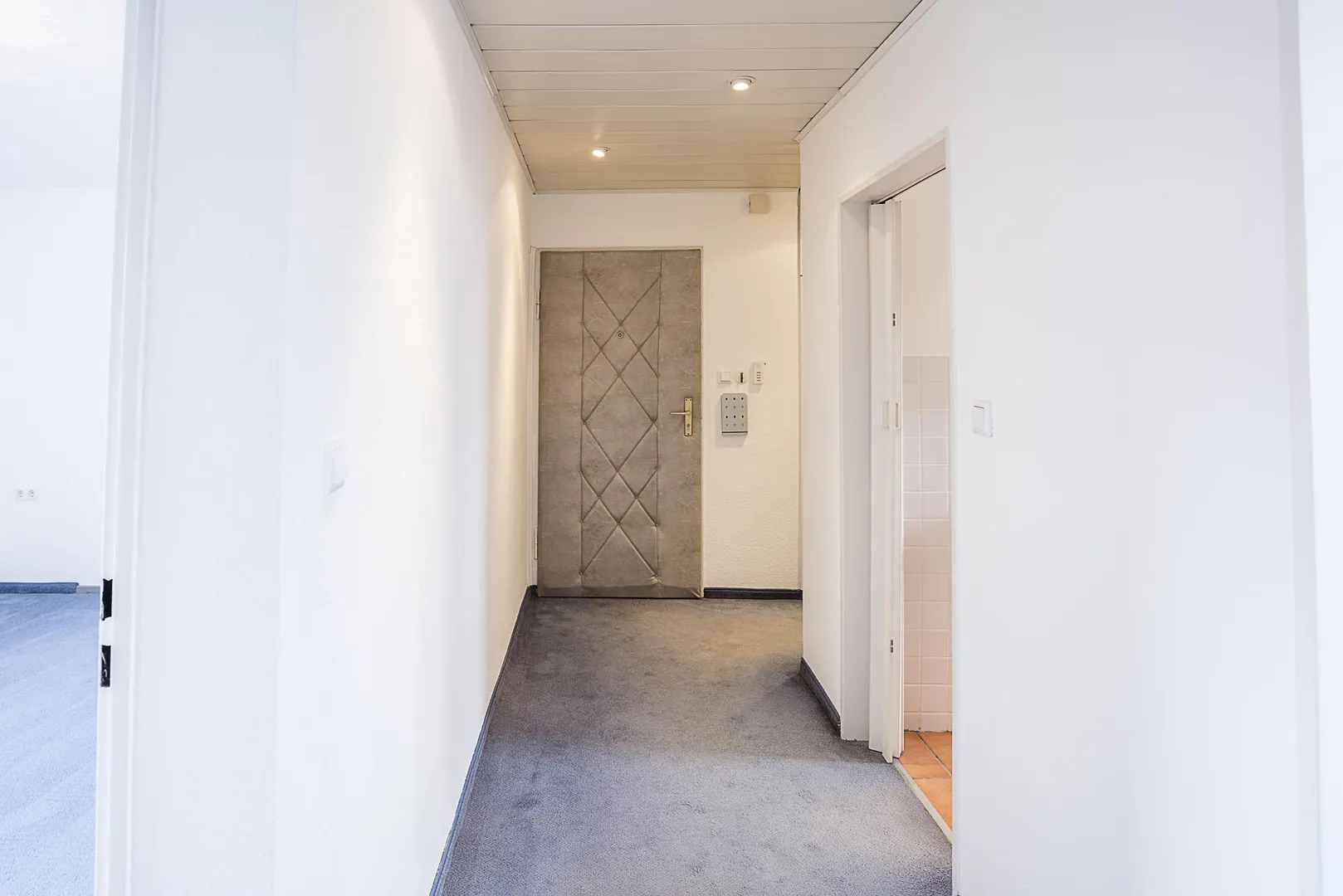 Die Böden in der Küche und im Badezimmer sind gefliest. Im Flur und in den Zimmern ist Teppichboden verlegt. Die Teppichböden in den Zimmern befinden sich in einem gepflegten Zustand. Neue Böden dürfen auf eigene Kosten verlegt werden.