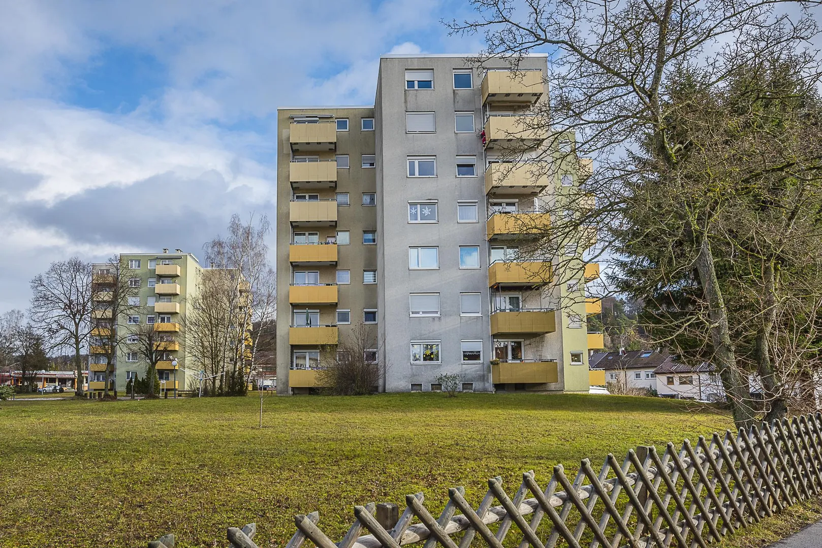 Die Wohnanlage besteht aus 3 Hochhäusern. Die Anlage wurde ca. 1958, massiv, 6-geschossig, komplett unterkellert sowie mit Flachdach erstellt.