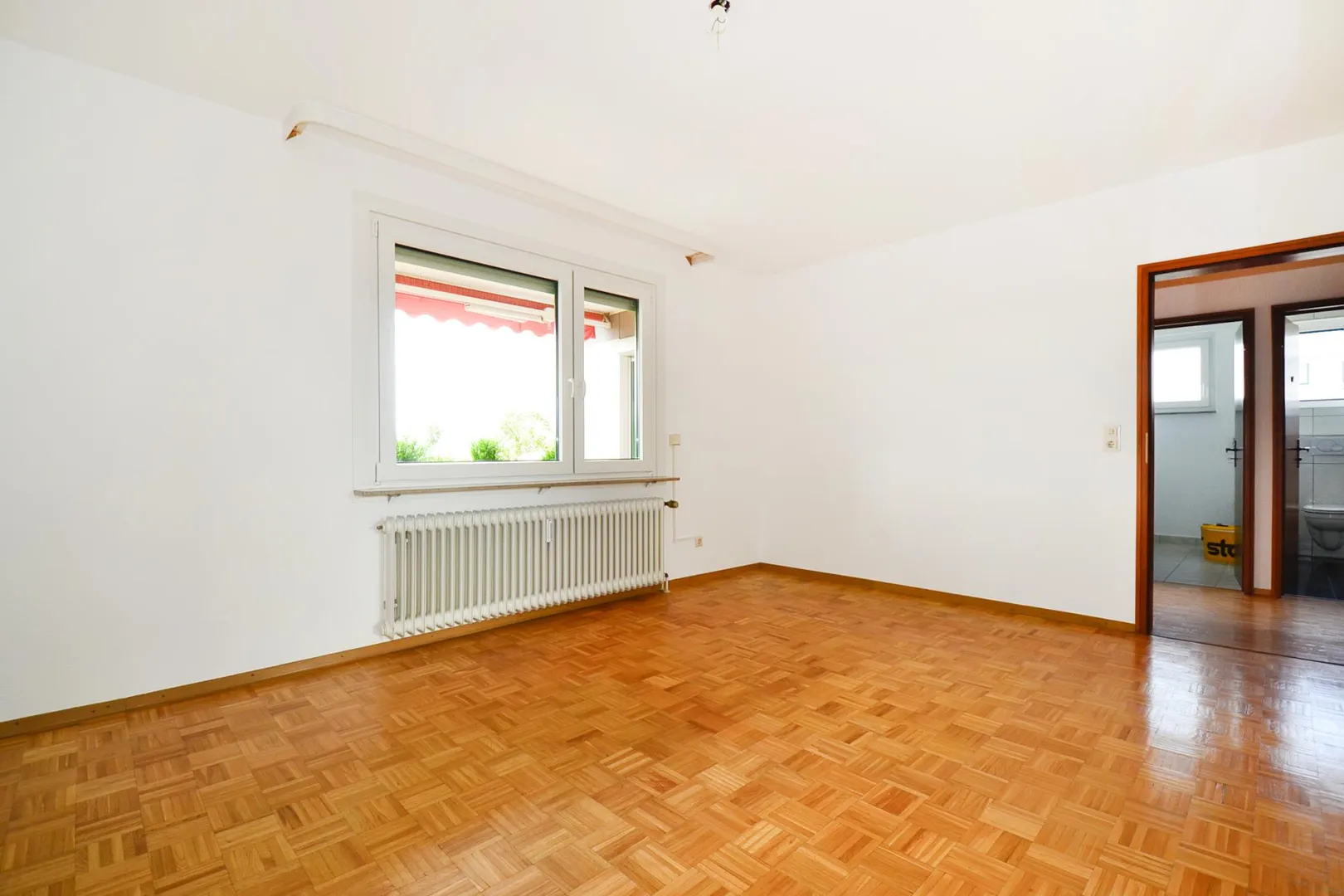Der Grundriss ist sehr gut. Alle Räume sind direkt vom Flur begehbar. Das Badezimmer und das separate WC verfügen über ein Fenster. Der knapp 9 m² große und überdachte West-Balkon ist über das Wohnzimmer begehbar. Ein Abstellraum mit Waschmaschinenanschluss befindet sich in der Wohnung.