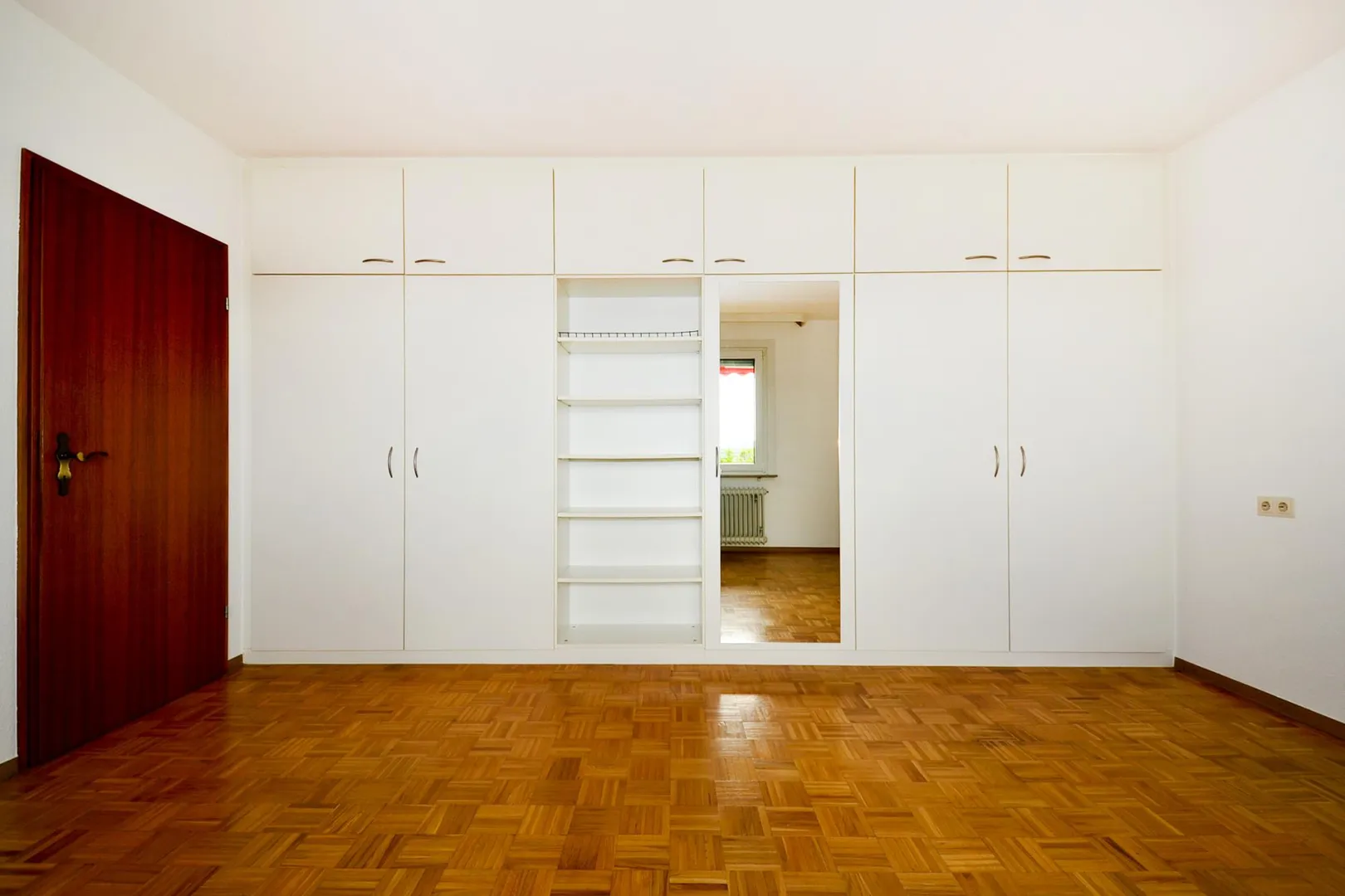 Das Schlafzimmer ist mit einem hochwertigen Einbauschrank ausgestattet.