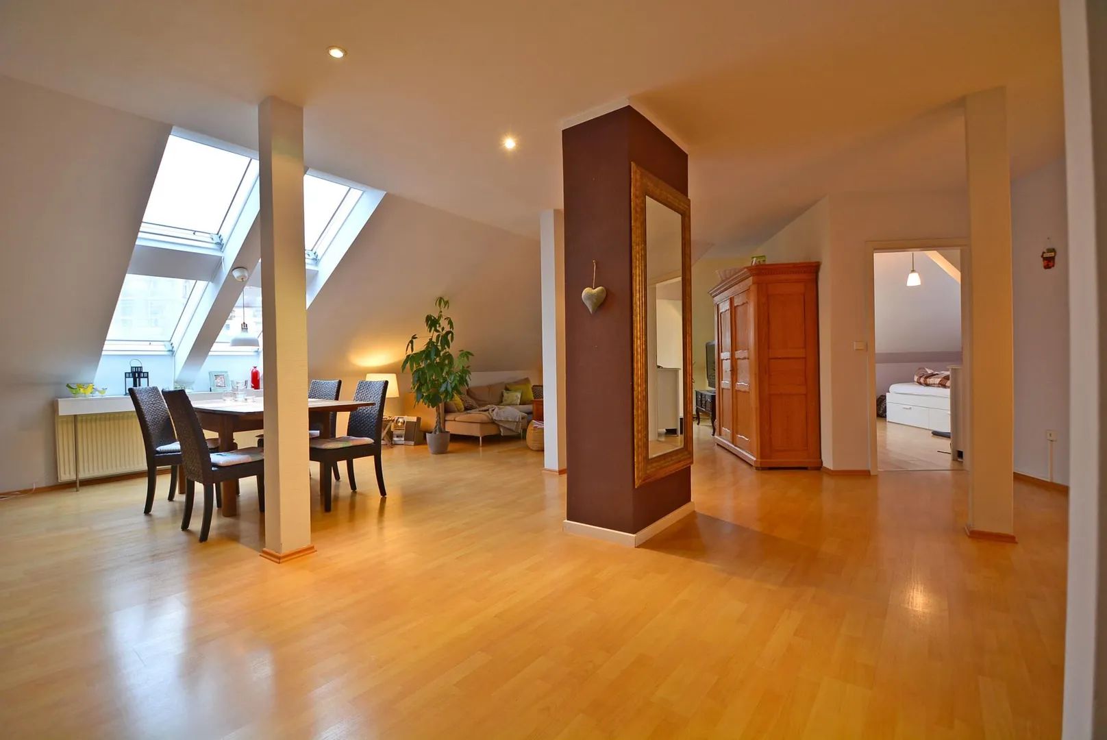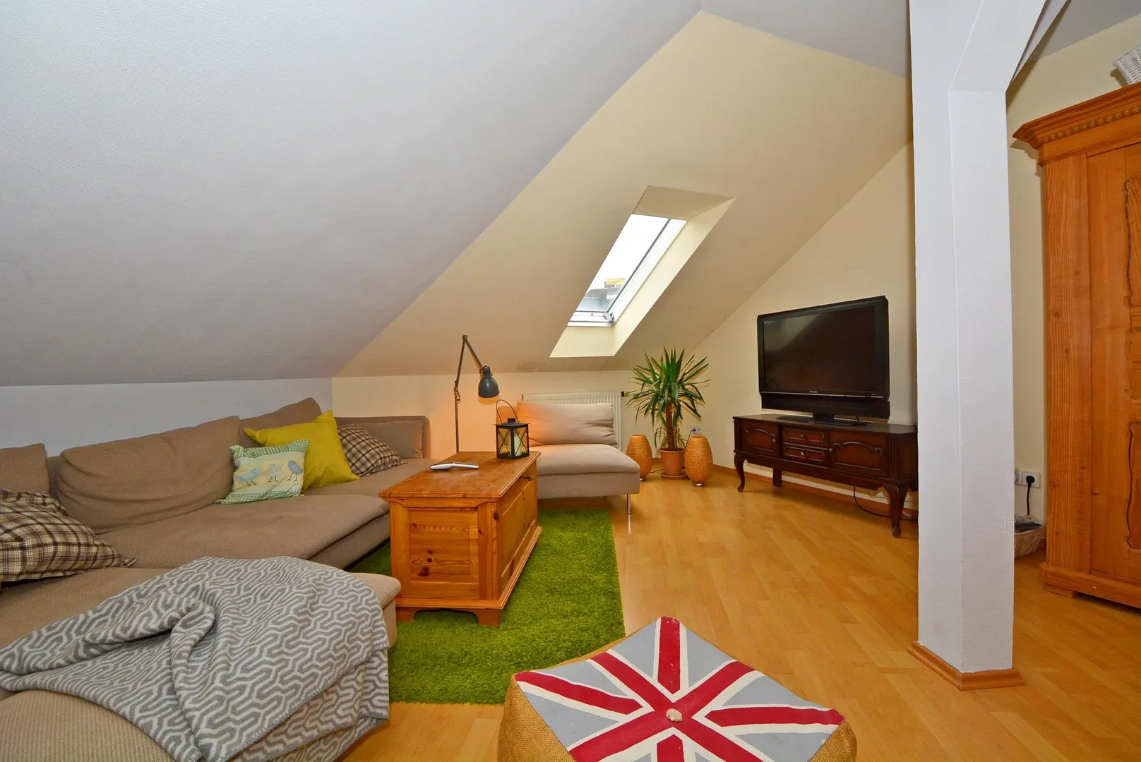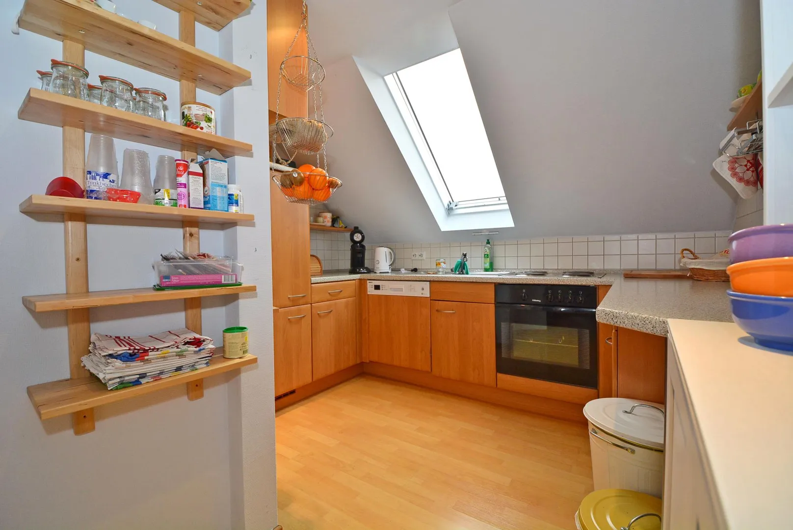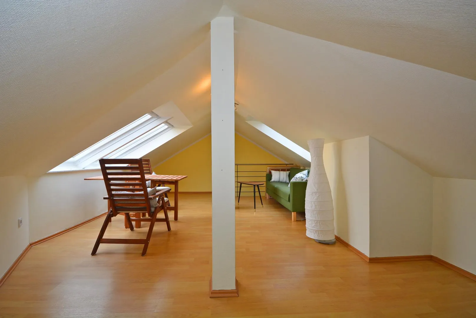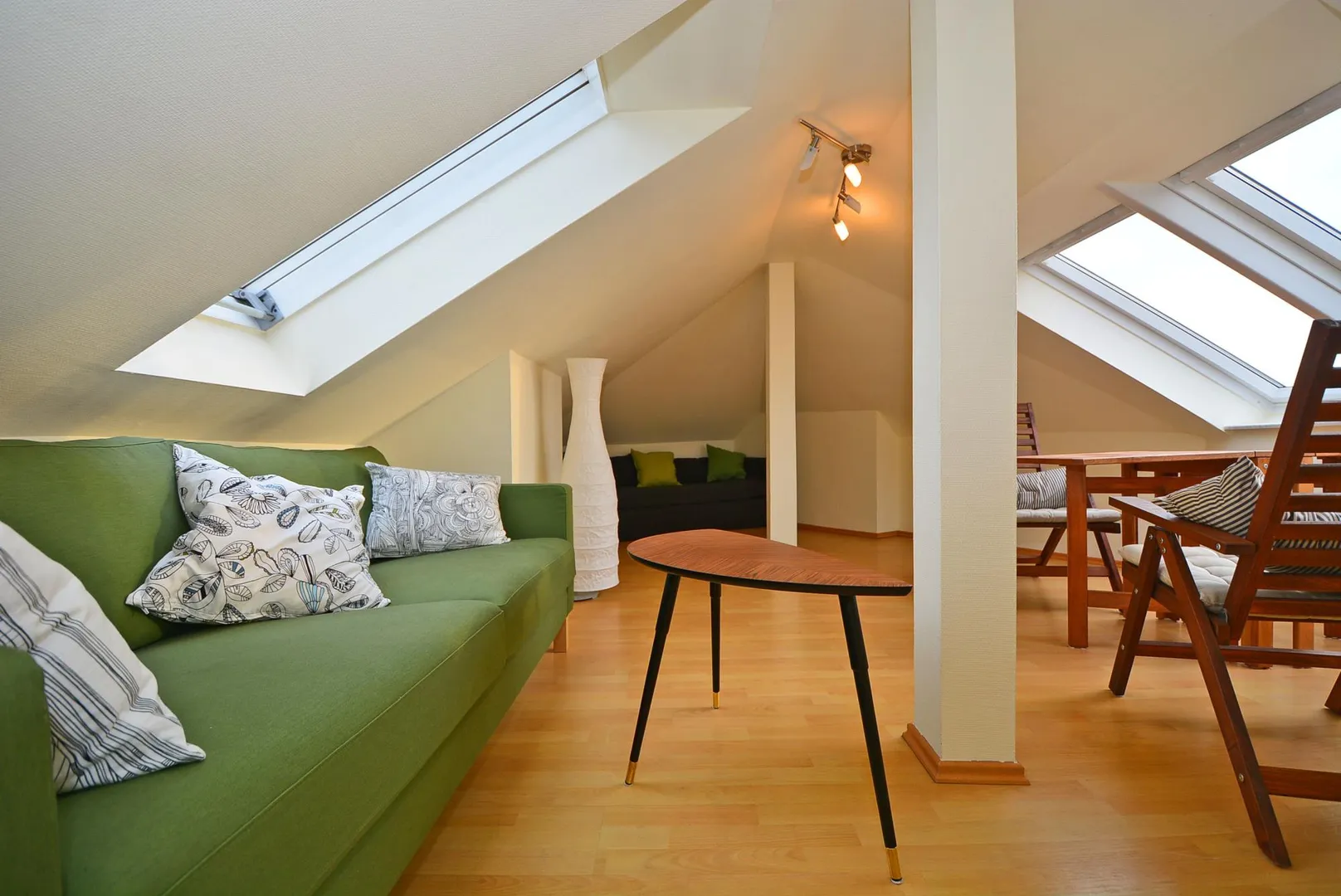 Durch die offene Gestaltung und viele Dachflächenfenster ist die Wohnung hell und sonnig. Das Studio bietet einen traumhaften Fernblick über Stuttgart bis hin zum Fernsehturm.