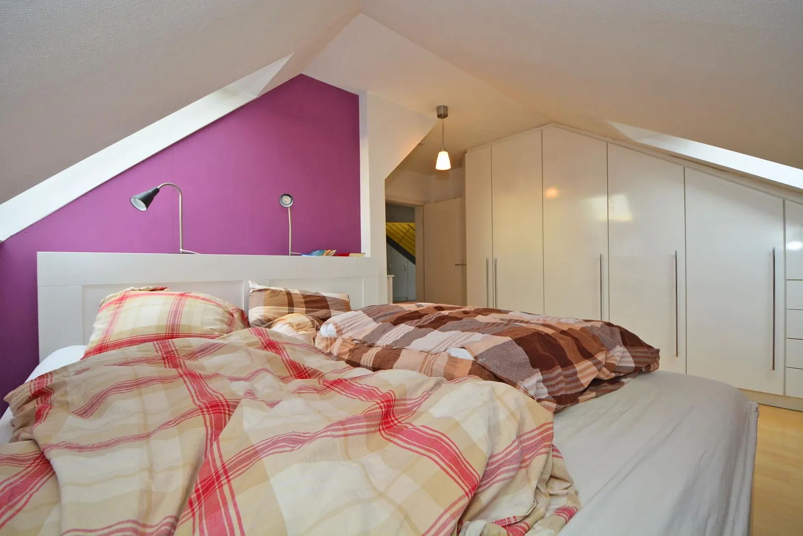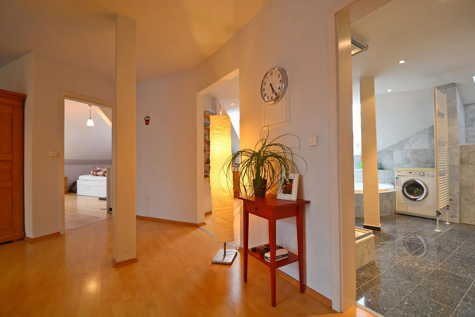 Diese individuelle und offen gestaltete 2-Zimmer-Dachgeschoss-Maisonette mit Studio befindet sich im 4. Obergeschoss (ohne Aufzug).
