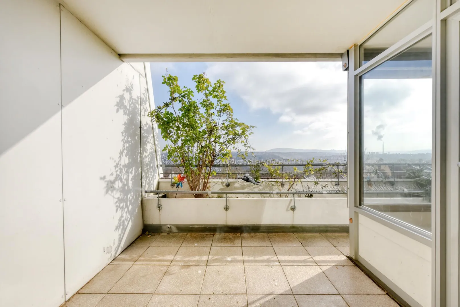 Diese großzügige und renovierte 2 1/2-Zimmer-Wohnung mit Max-Eyth-See-Blick und Fernblick zum Kappelberg befindet sich im 2. Obergeschoss eines luxuriösen Hochhauses.