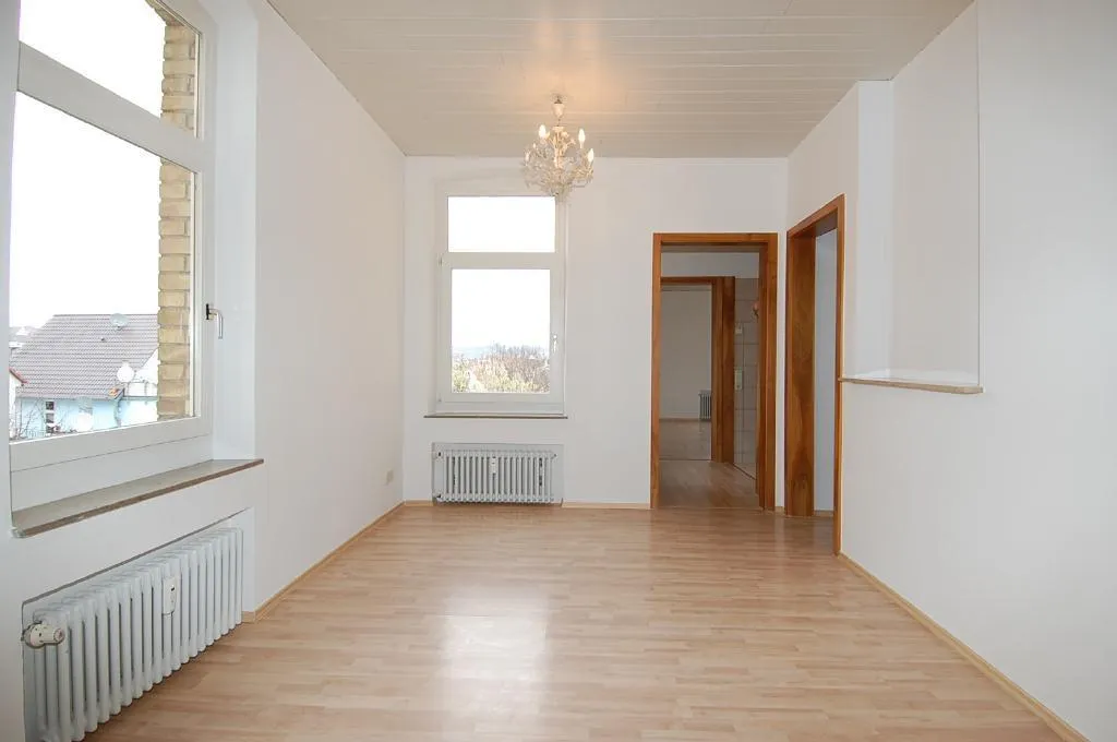Das Esszimmer ist ein Durchgangszimmer. Die Wohnung ist überwiegend mit Laminat ausgestattet. Die Küche, das Bad und das separate WC sind gefliest.