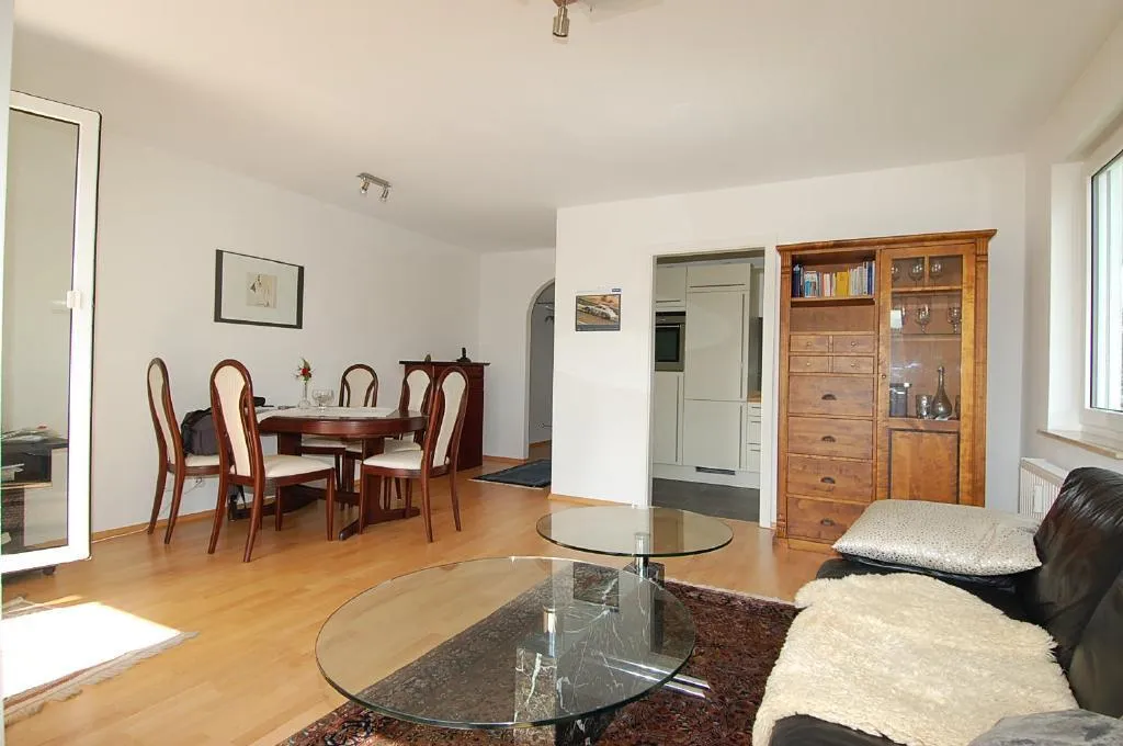 Durch die offene Gestaltung der Wohnung und die Südausrichtung ist die Wohnung sehr hell und sonnig. Der Wohn-, Ess-, Flurbereich ist offen und mit Parkettboden ausgestattet.
