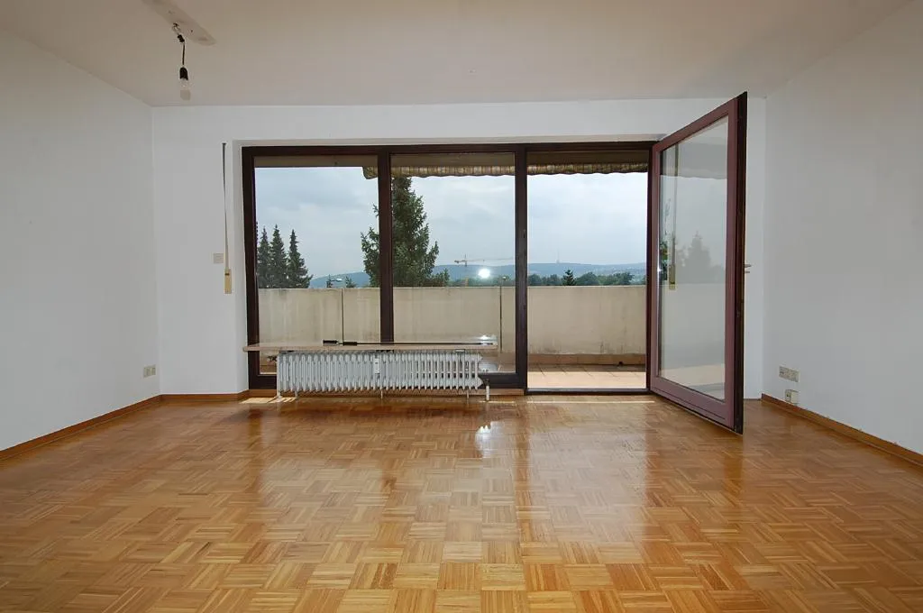 Vom ca. 10 m² großen, teilüberdachten Süd-Balkon haben Sie eine Fernsicht bis zum Fernsehturm. Der Balkon ist mit einer Markise ausgestattet.