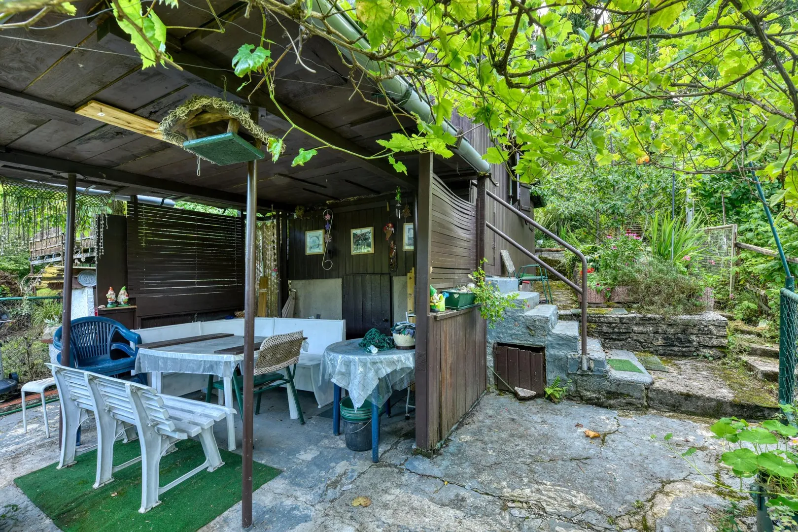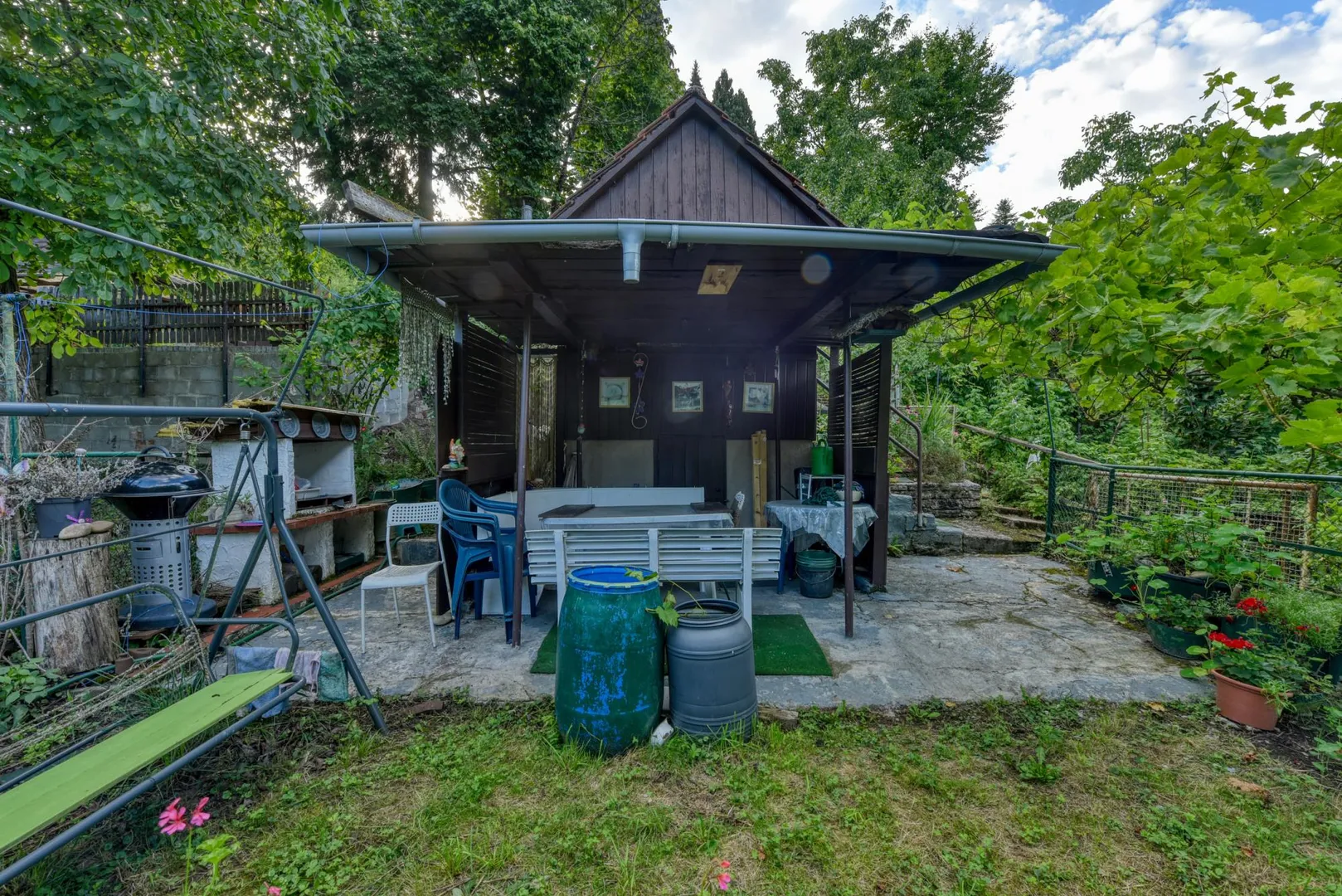 Es befindet sich in Ost-Hanglage und verfügt über ein ca. 18 m² großes Gartenhäusle mit einer massiven ca. 10 m² großen Unterkellerung, einer ca. 12 m² großen Terrasse sowie einem Bio-WC.