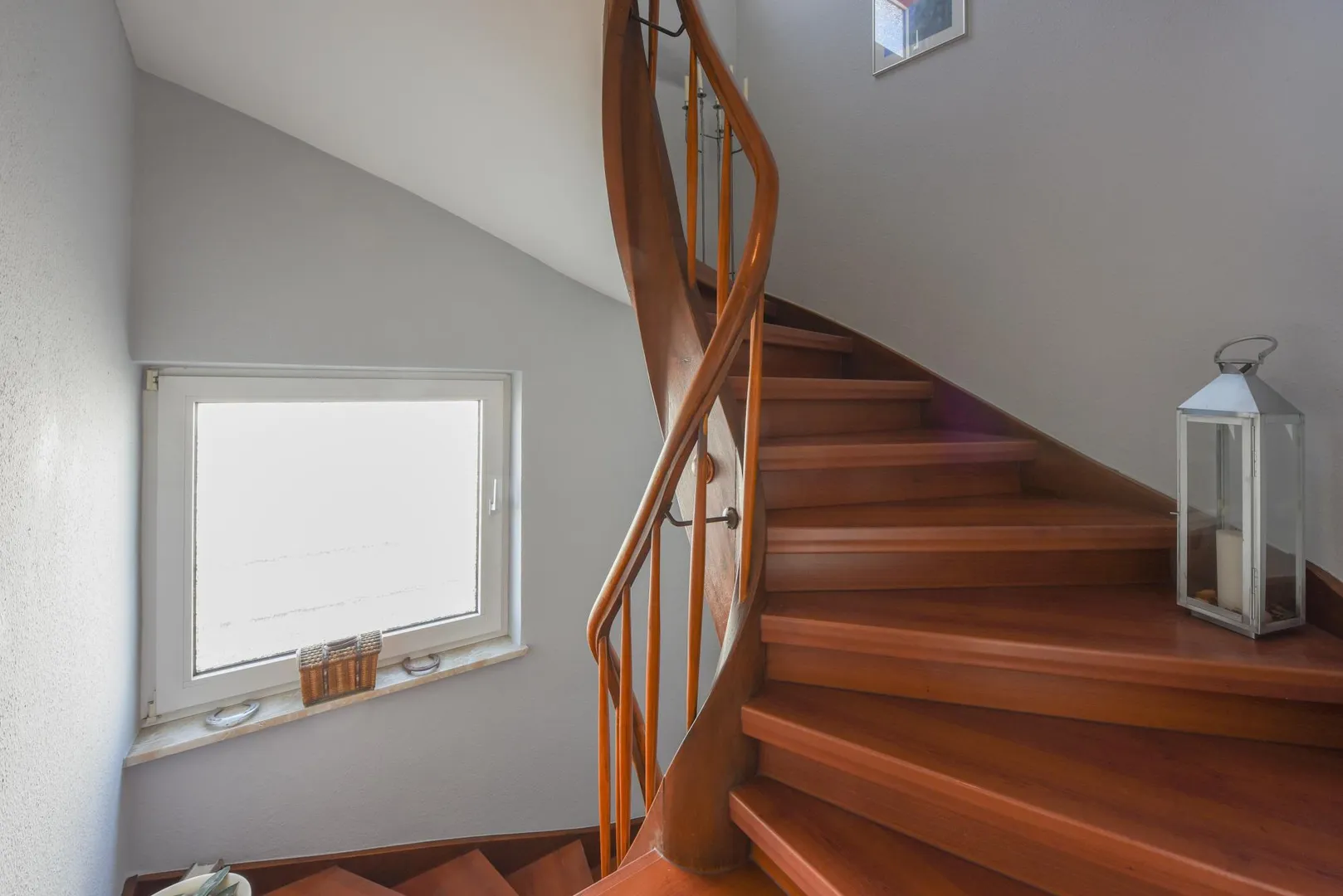 Das Haus ist aufgeteilt in 3 Wohneinheiten. Das Erdgeschoss ist über eine Wendeltreppe direkt mit dem Untergeschoss verbunden.