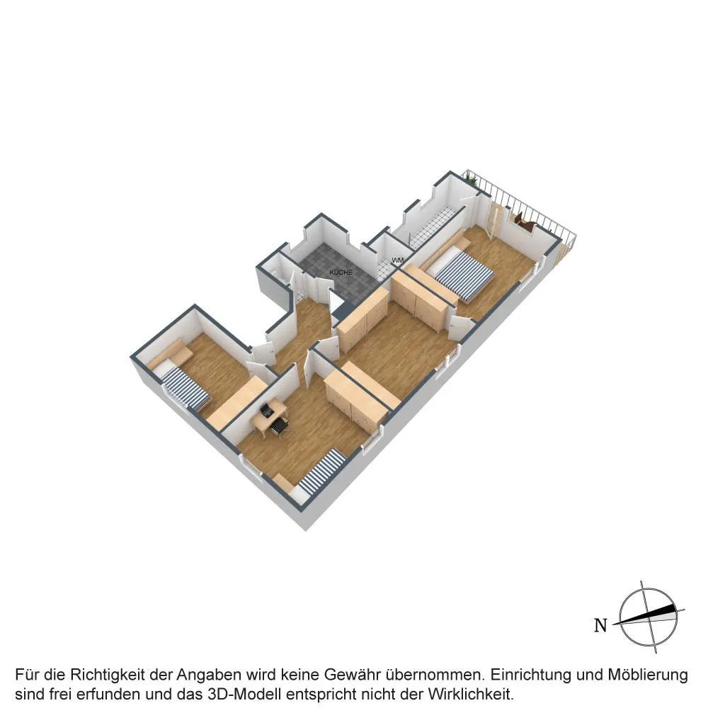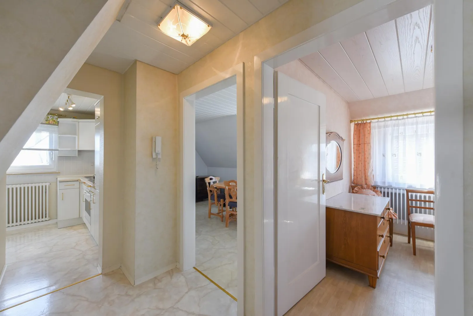 Die 4-Zimmer-Wohnung im Dachgeschoss mit Einbauküche verfügt über ca. 57 m² Wohnfläche und wurde ca. Anfang der 90-er Jahre modernisiert.