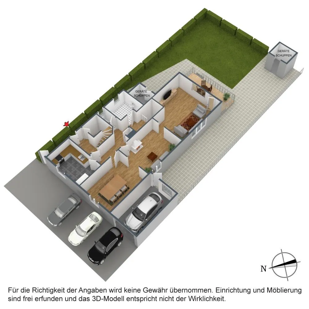 Dieses 3-Familien-Haus wurde freistehend auf einem 466 m² großen, rechteckigen und fast ebenen Grundstück in Süd-Ost Ausrichtung erstellt.