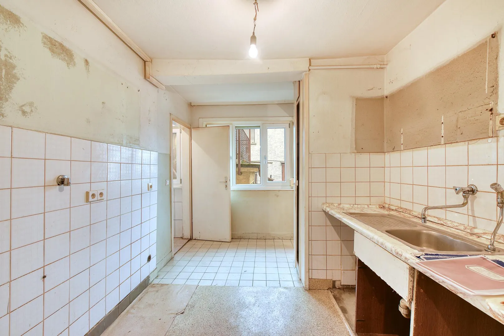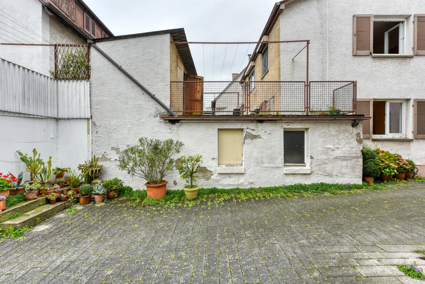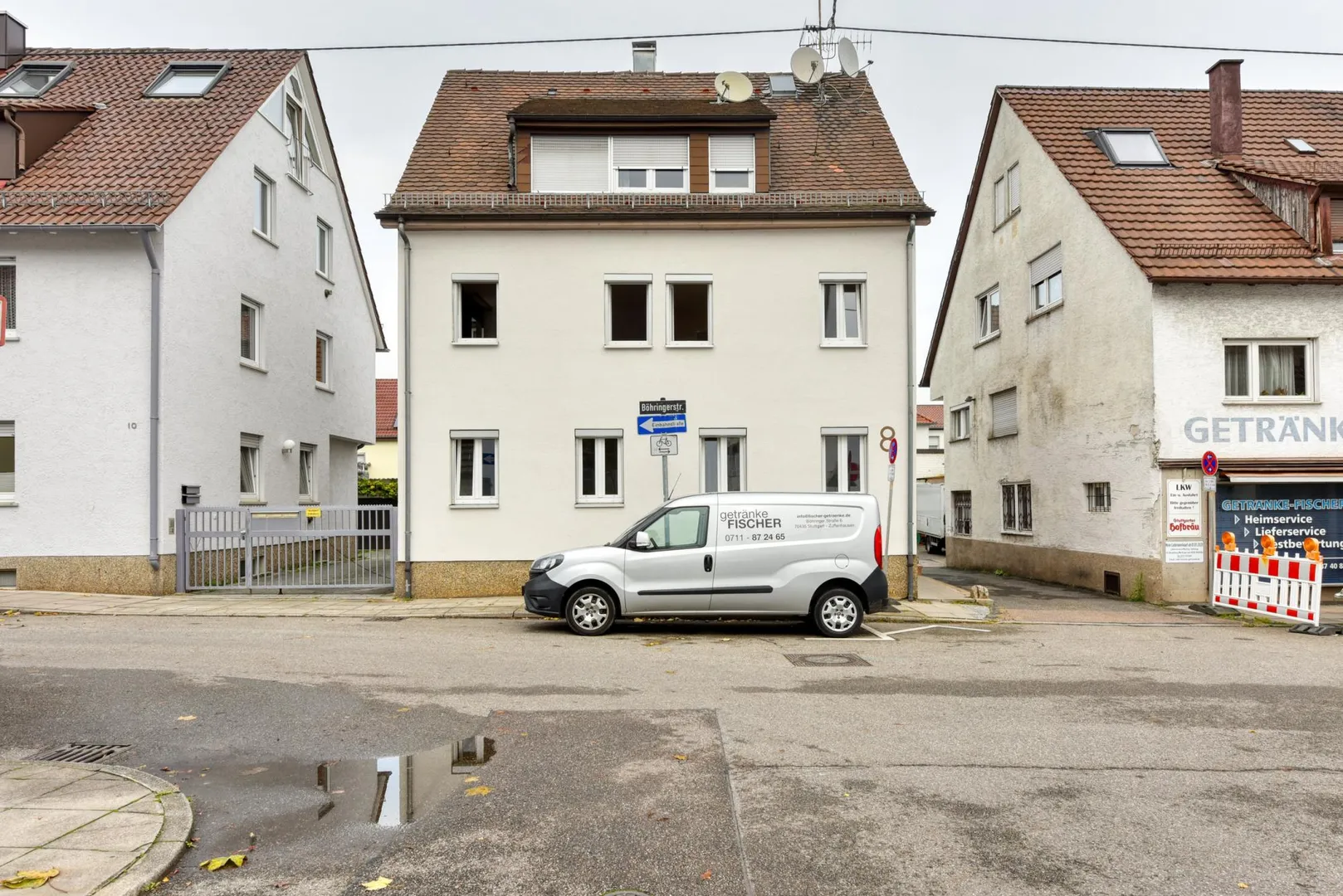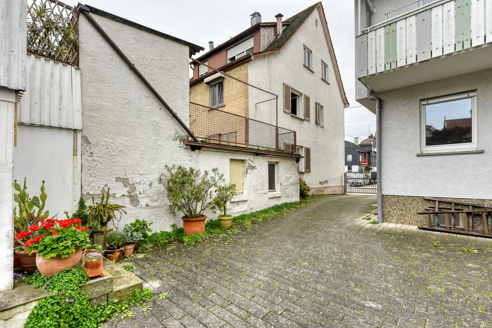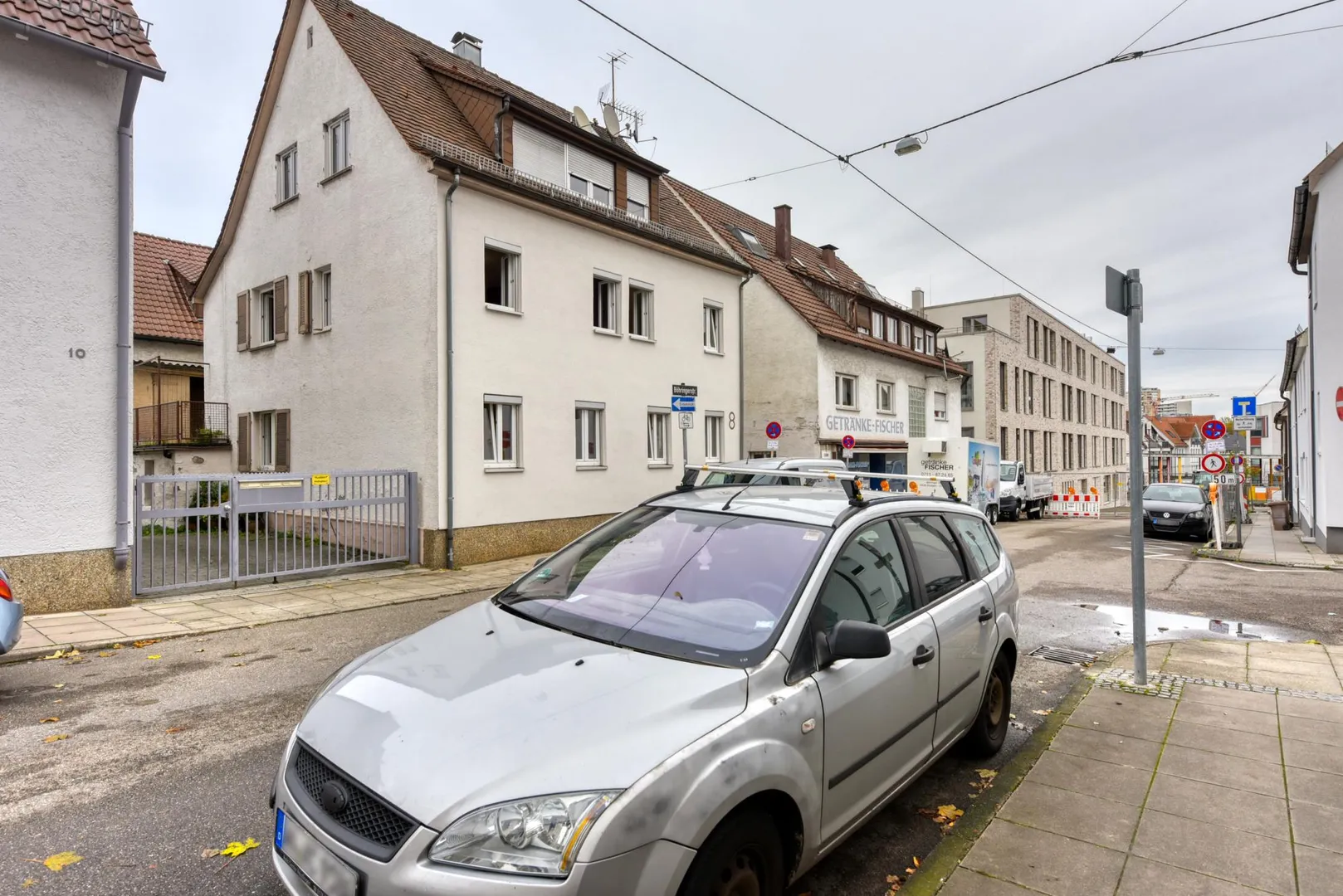 Dieses sanierungsbedürftige und freistehende 3-Familienhaus mit einer Werkstatt/Garage wurde auf einem 176 m² großen Grundstück erstellt.