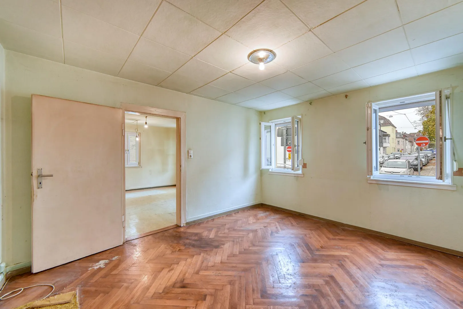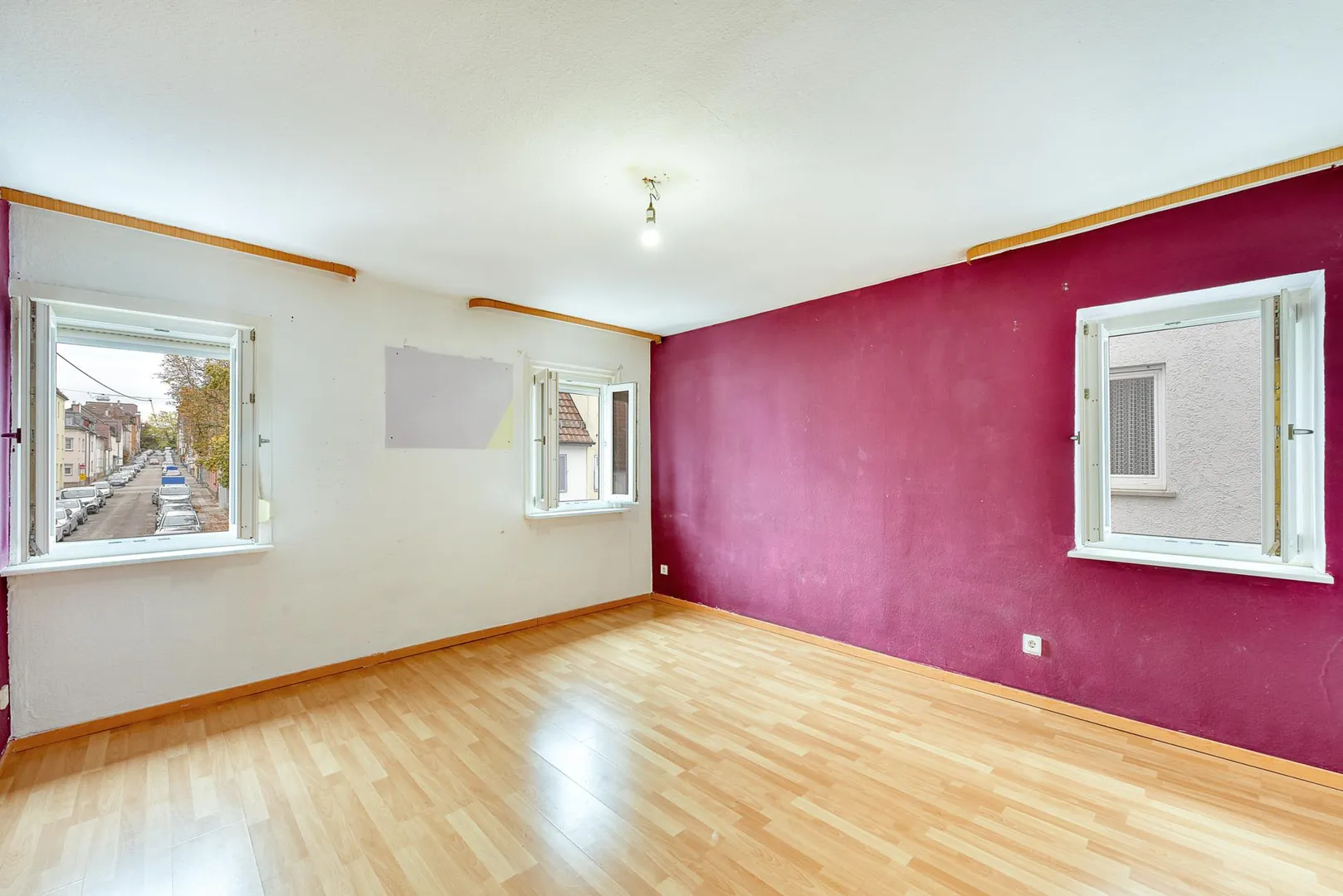 Die Wohnungen im Hochparterre und Obergeschoss stehen leer. Die Dachgeschoss-Wohnung ist seit 2013 vermietet.