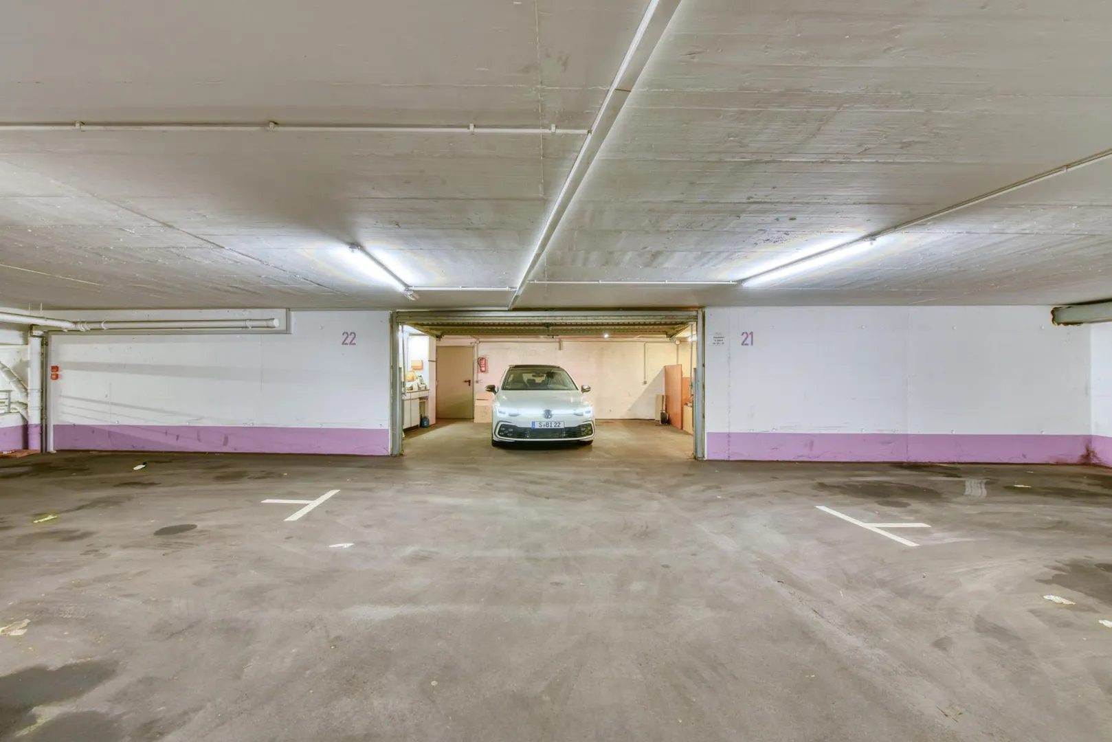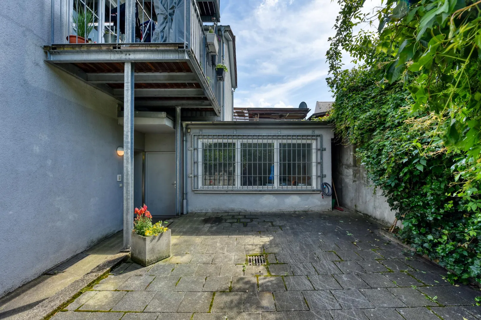 Der Zugang zur Doppel-Garage befindet sich direkt hinter dem Lager. Die Zufahrt zur Garage befindet sich direkt neben dem Haus.