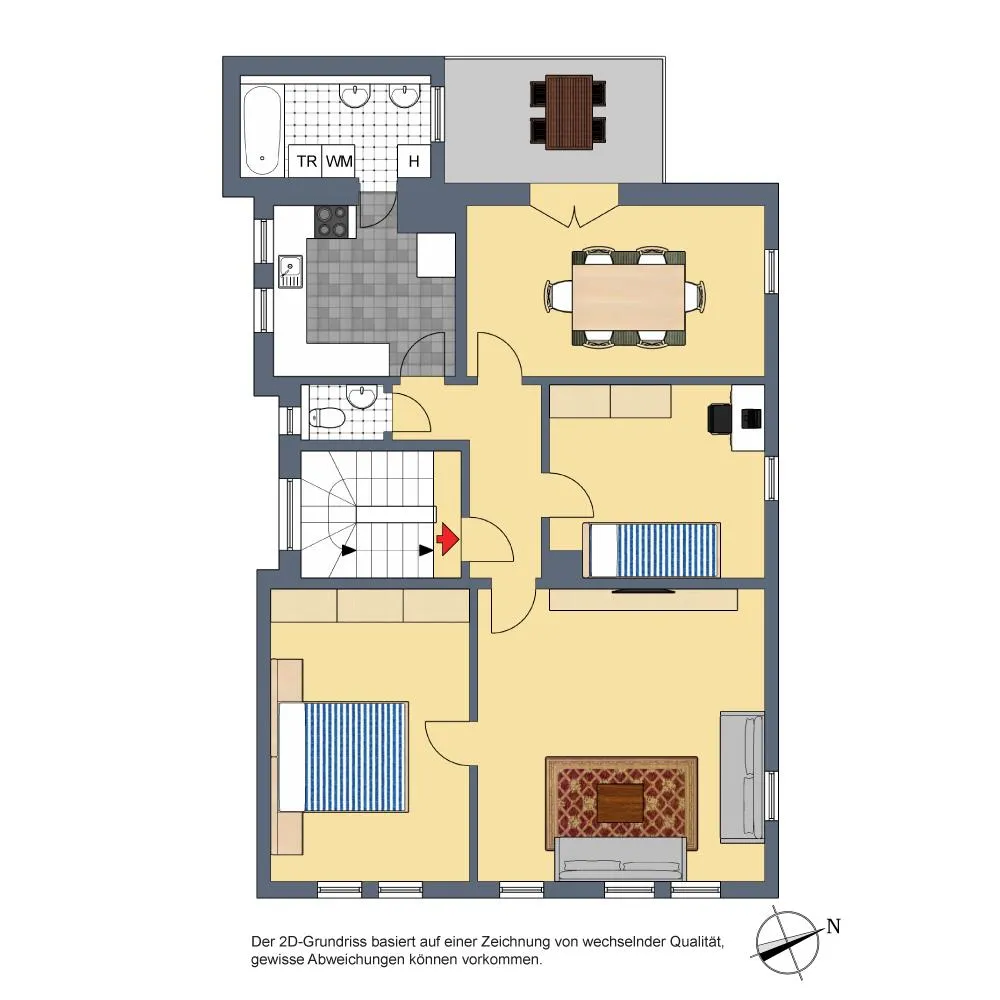 Die 4-Zimmer-Wohnung im Obergeschoss ist an eine 4-köpfige Familie seit 2012 für 720 EUR Kaltmiete vermietet.
