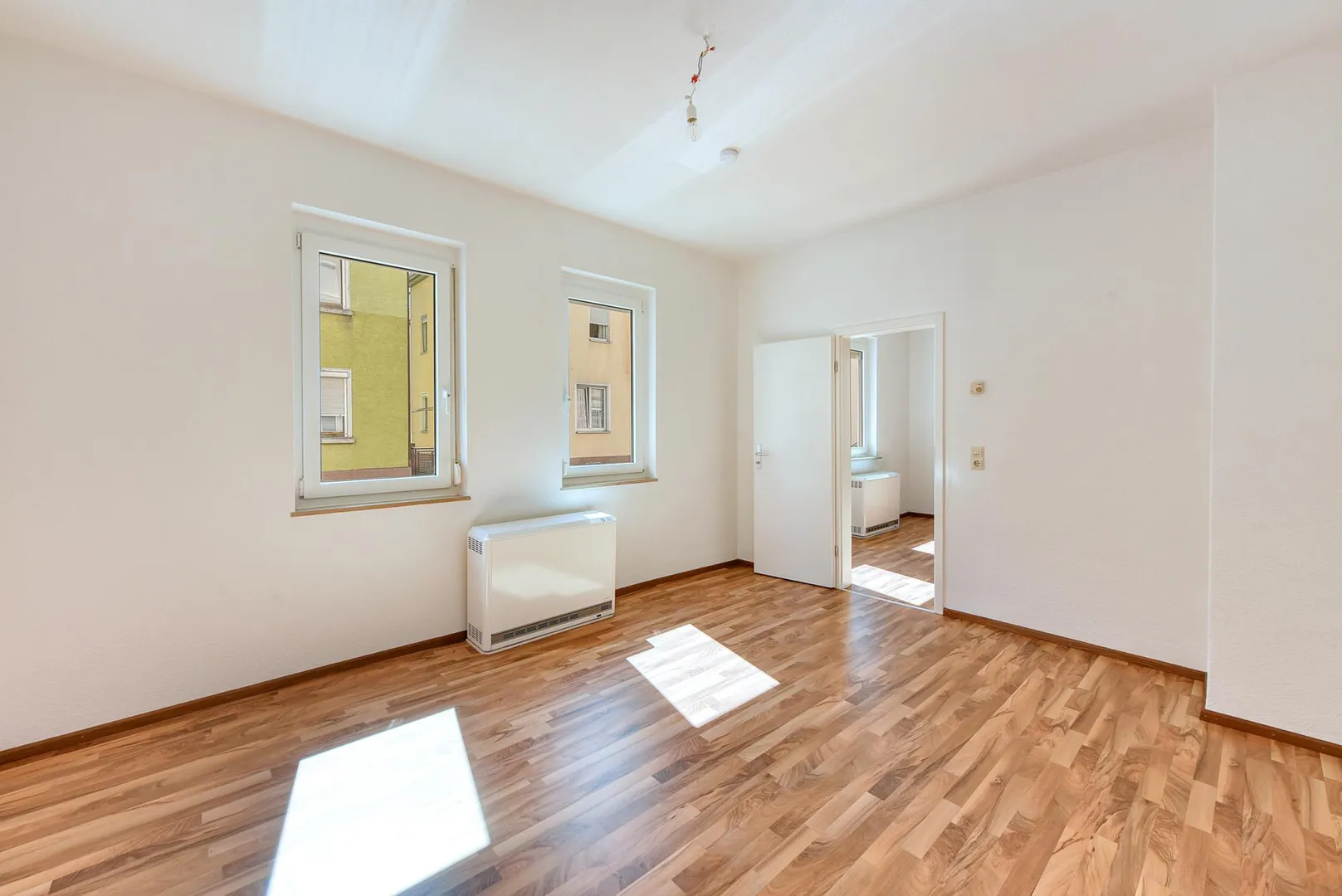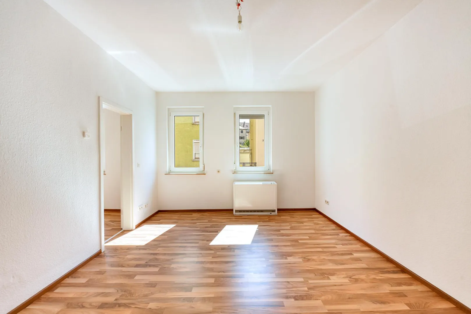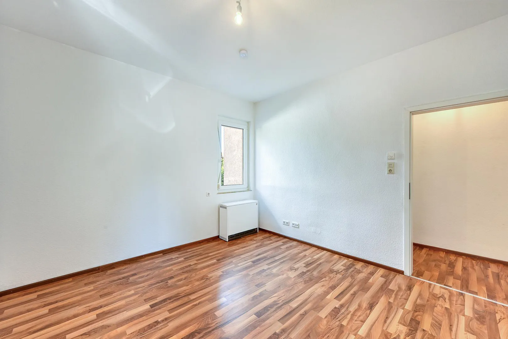 Die Wände sind mit Raufaser tapeziert und frisch, weiß gestrichen. Die Raumhöhen betragen ca. 2,88 Meter.