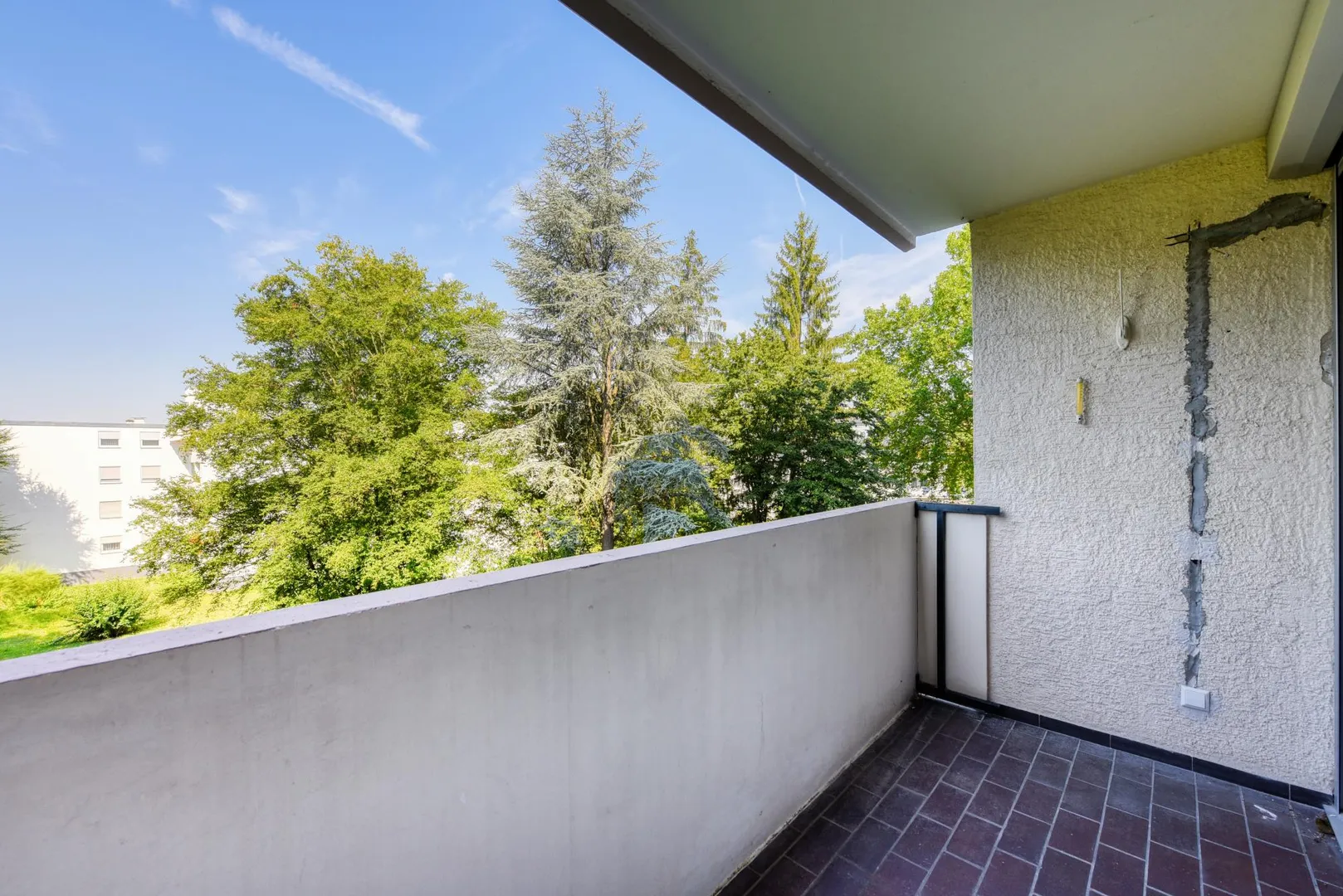 Der Grundriss ist gut. Alle Räume sind direkt vom Flur begehbar. Das WC ist separat. Der ca. 5 m² große und überdachte Balkon ist nach Westen ausgerichtet und ist über das Wohnzimmer begehbar.