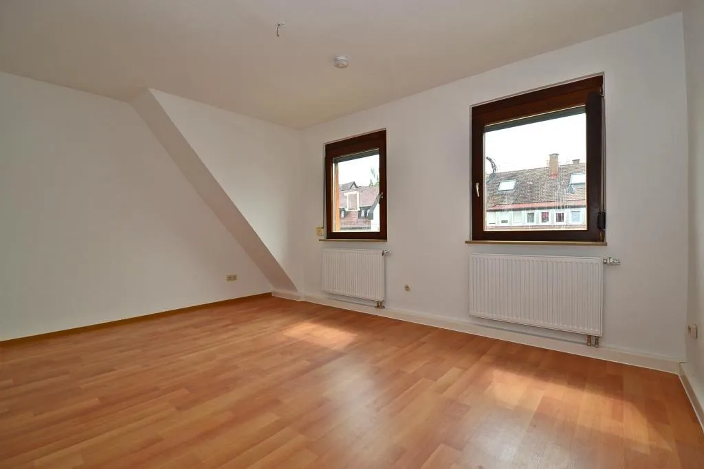 Diese frisch modernisierte 3-Zimmer-Dachgeschoss-Wohnung befindet sich im 2. Obergeschoss eines Wohn- und Geschäftshauses mitten in der Haupteinkaufsstraße.