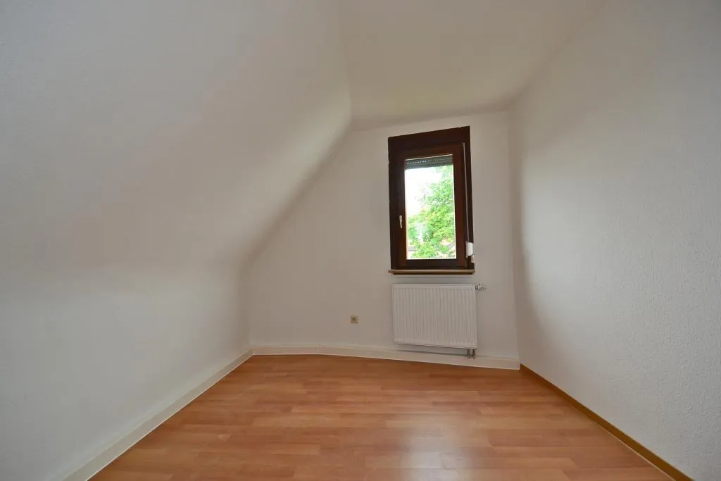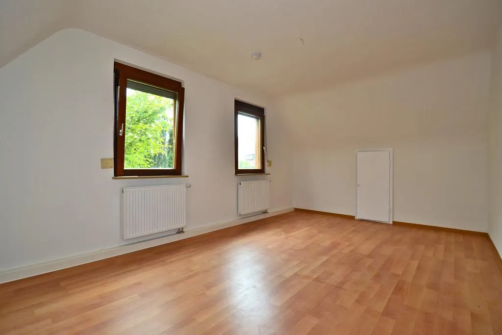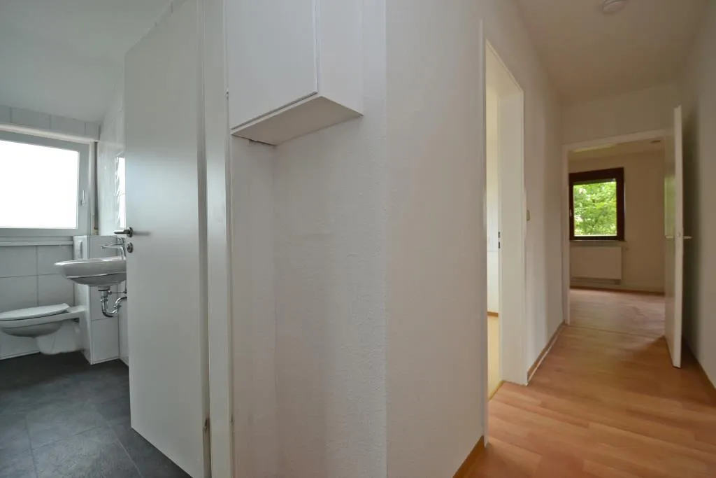 Neues Bad, neue Gas-Etagenheizung, neue Laminatböden, frisch mit Raufasertapeten tapeziert und frisch, weiß gestrichen.