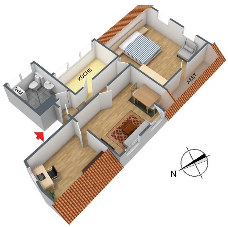 Diese frisch modernisierte 3-Zimmer-Dachgeschoss-Wohnung befindet sich im 2. Obergeschoss.
