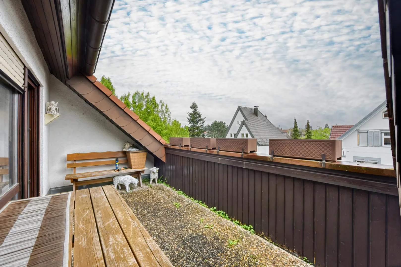 Die Holzfenster verfügen über Rollläden.