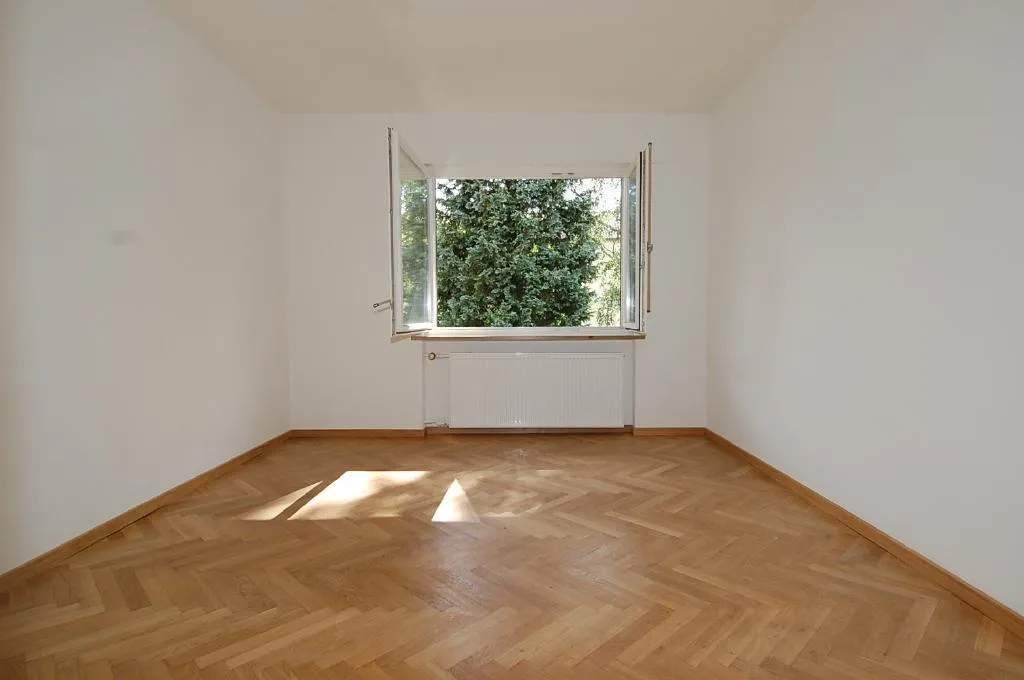 Das Wohn-, Schlaf- und Kinderzimmer sind mit einem Parkettboden ausgestattet.