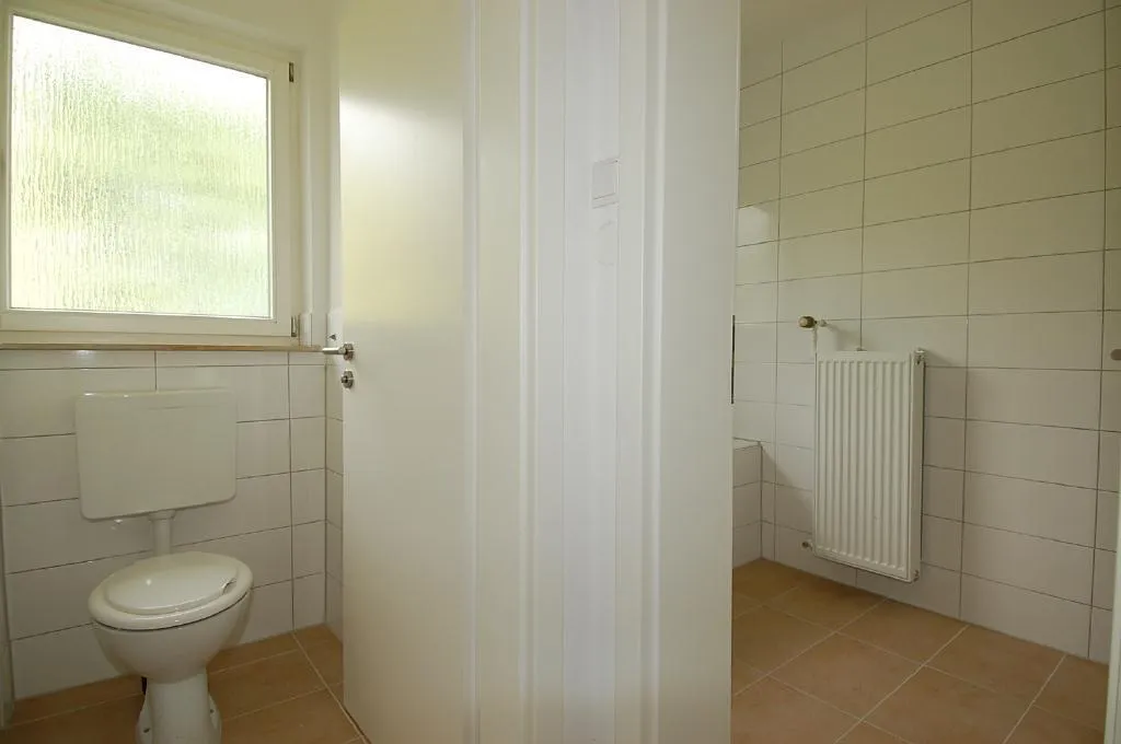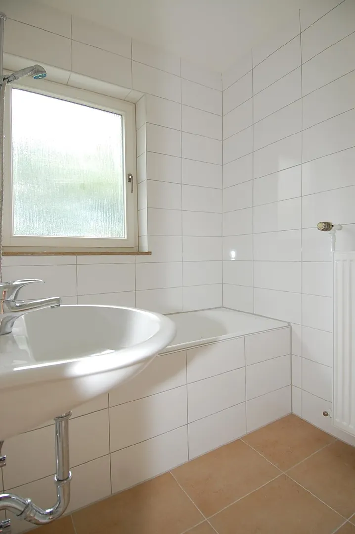 Das Bad ist raumhoch gefliest und mit einer Wanne ausgestattet.