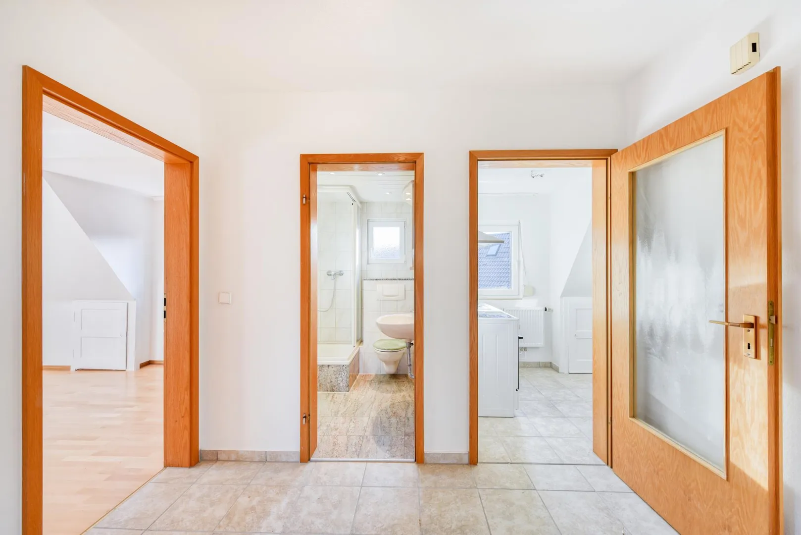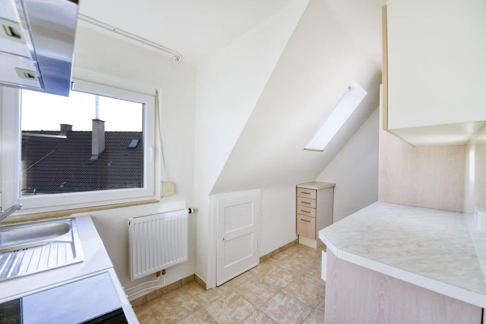 Diese frisch renovierte 3-Zimmer-Dachgeschoss-Etagen-Wohnung ohne Balkon, an einen absoluten Nichtraucher, befindet sich im 2. Obergeschoss eines freistehenden 3-Familienhauses.